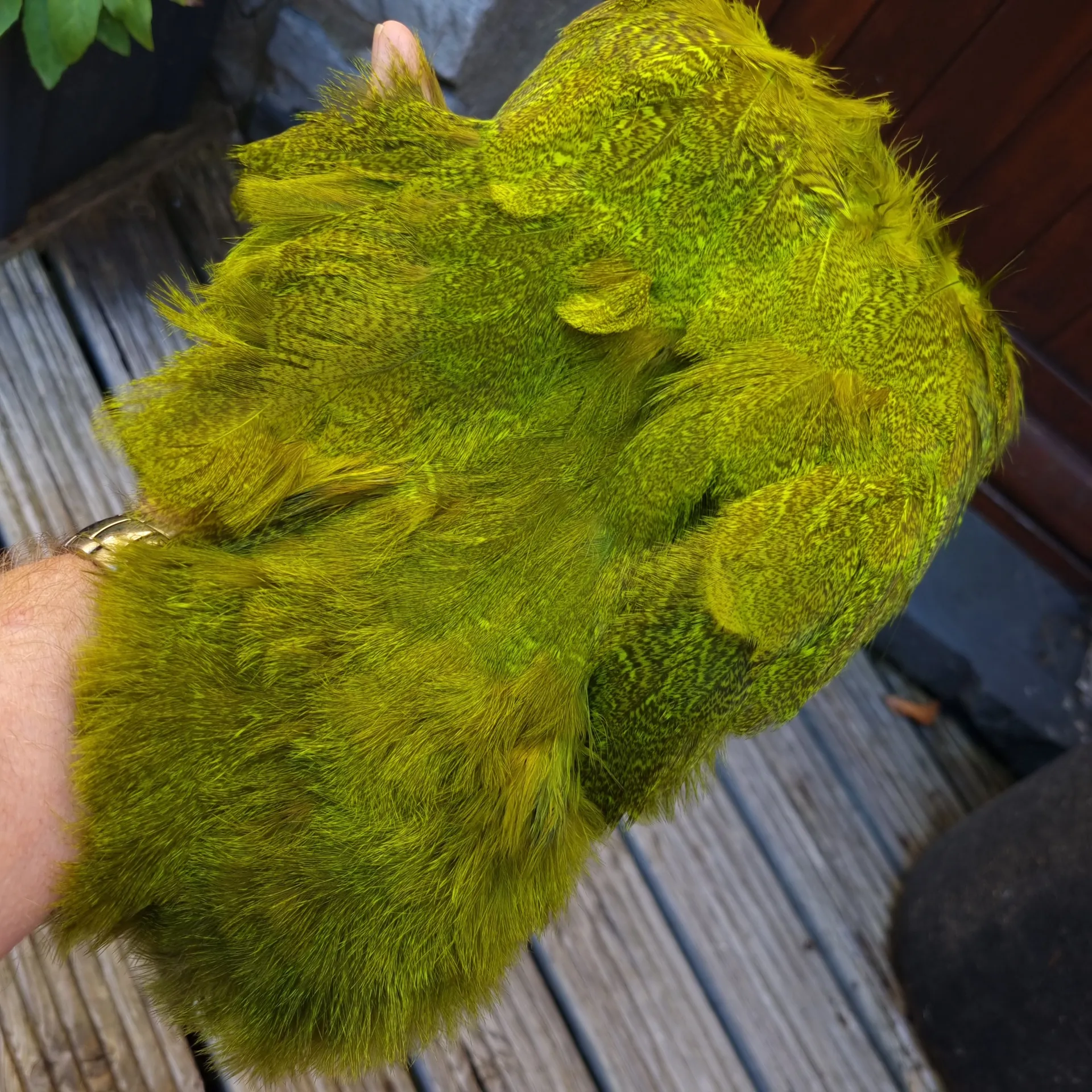 Whiting Coq de Leon Soft Hackle WITH Chickabou, wow what an interesting product and a much larger patch than the Brahma Soft Hackle with Chickabou but then again it’s a much larger bird!!! Very Heavily Speckled and dyed in a range of colours and Lakeland will increase the colour range as other colours become available as long as the sales back it up. If you like the product you need to give it a try, strong sales and the colour range will grow!!! Perfect for Lures and streamers or any subsurface pattern!! Lakeland have uploaded lots of images for each colour so take a good long look to see the true tying possibilities of the soft hackle with Chickabou!!!