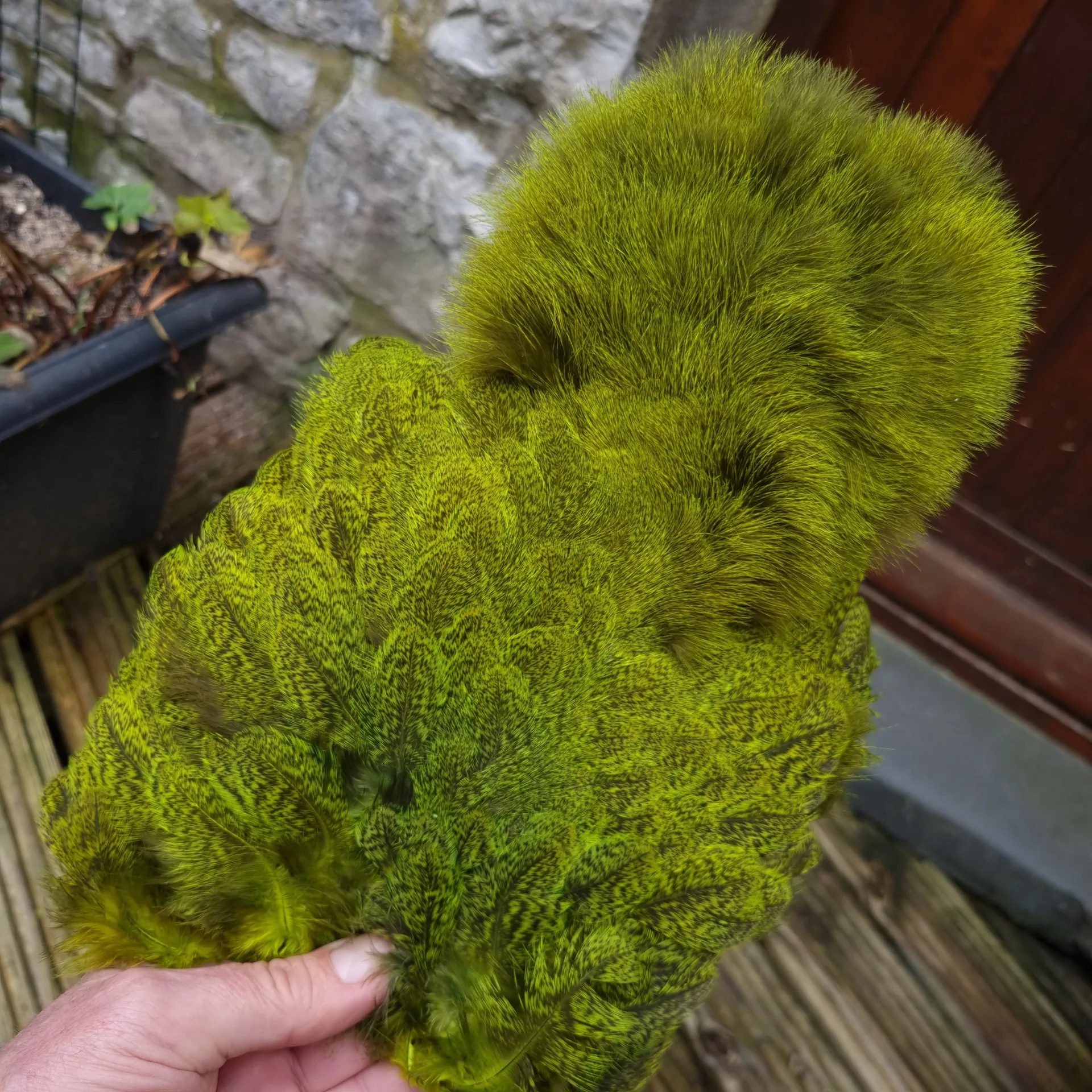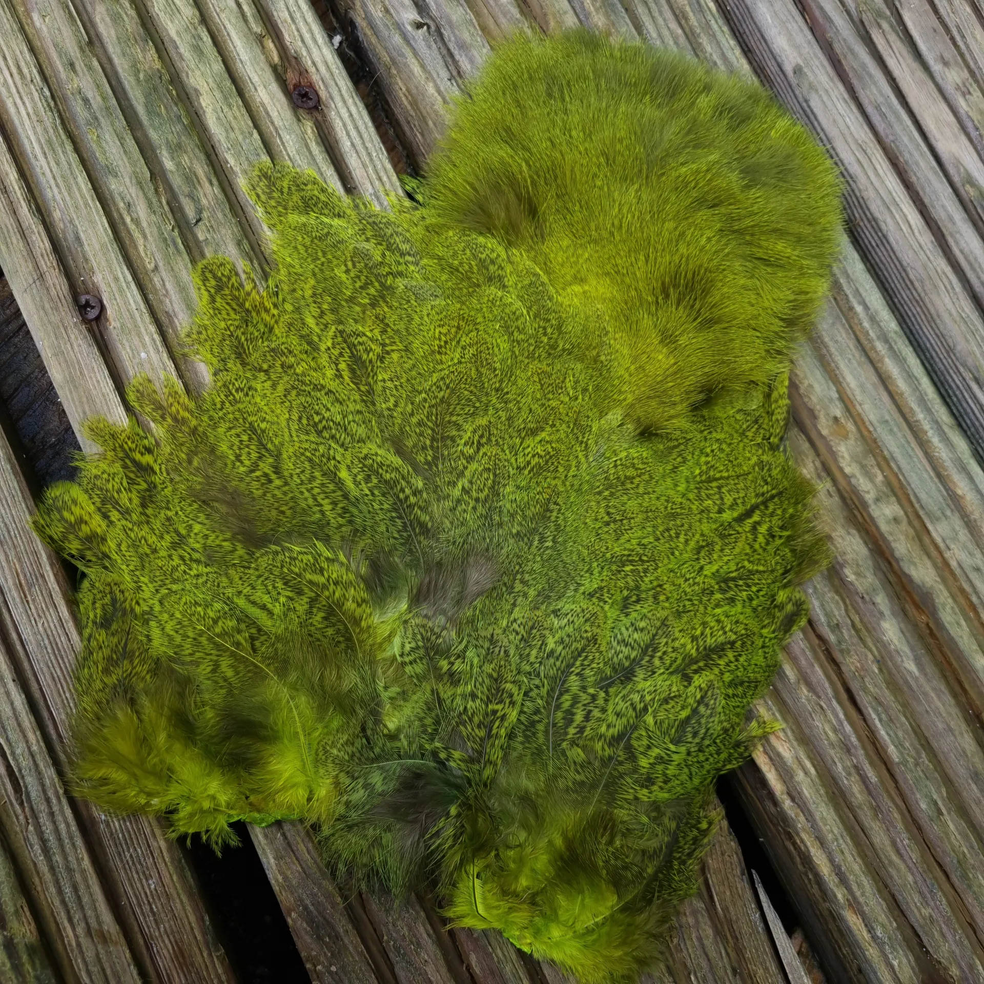 Whiting Coq de Leon Soft Hackle WITH Chickabou, wow what an interesting product and a much larger patch than the Brahma Soft Hackle with Chickabou but then again it’s a much larger bird!!! Very Heavily Speckled and dyed in a range of colours and Lakeland will increase the colour range as other colours become available as long as the sales back it up. If you like the product you need to give it a try, strong sales and the colour range will grow!!! Perfect for Lures and streamers or any subsurface pattern!! Lakeland have uploaded lots of images for each colour so take a good long look to see the true tying possibilities of the soft hackle with Chickabou!!!