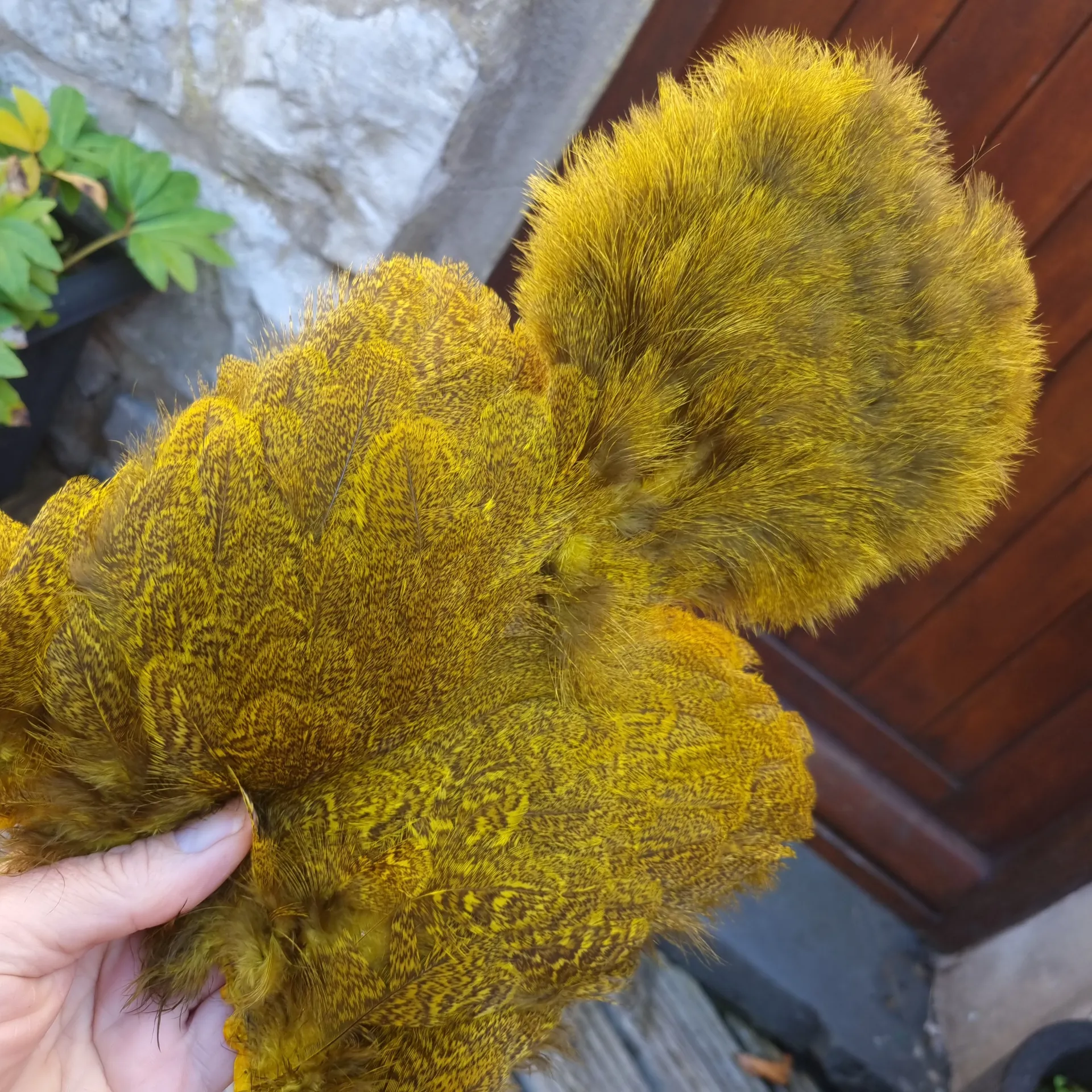 Whiting Coq de Leon Soft Hackle WITH Chickabou, wow what an interesting product and a much larger patch than the Brahma Soft Hackle with Chickabou but then again it’s a much larger bird!!! Very Heavily Speckled and dyed in a range of colours and Lakeland will increase the colour range as other colours become available as long as the sales back it up. If you like the product you need to give it a try, strong sales and the colour range will grow!!! Perfect for Lures and streamers or any subsurface pattern!! Lakeland have uploaded lots of images for each colour so take a good long look to see the true tying possibilities of the soft hackle with Chickabou!!!
