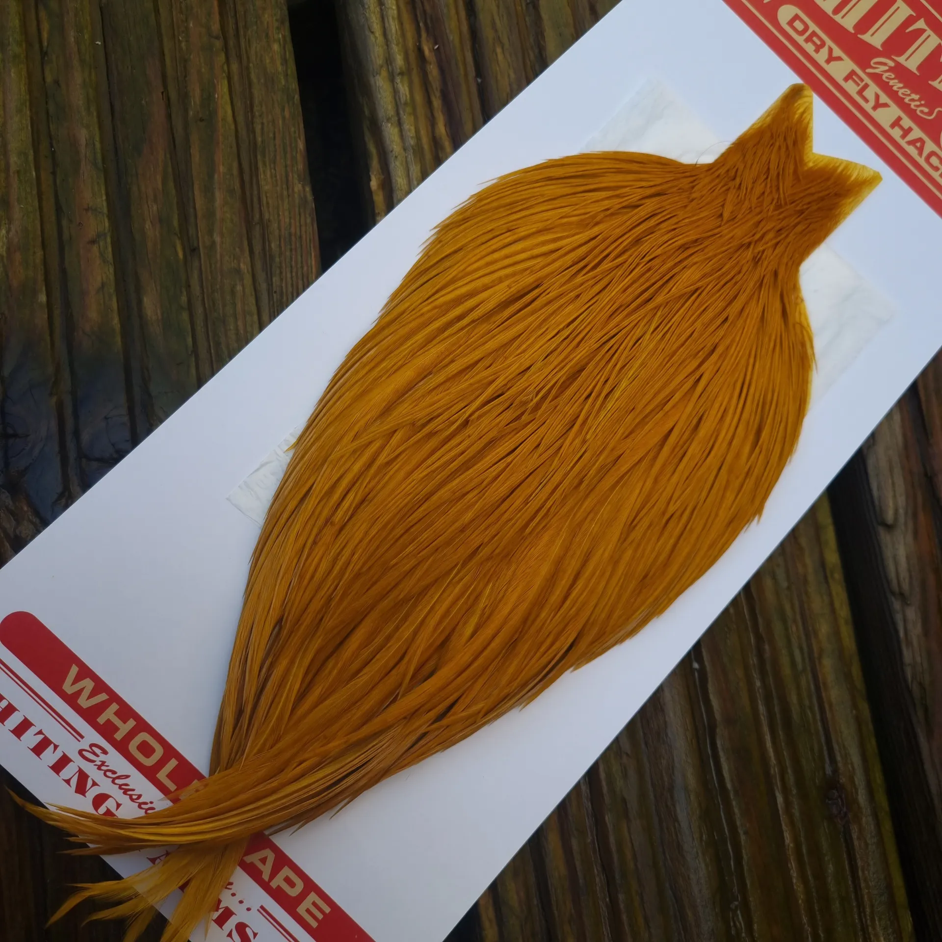 Whiting Dry Fly Capes are by far the best hackles available to the fly tier, Whiting use a medal system for grading starting at Platinum, Gold, Silver, Bronze, Pro-Grade and Now Commercial Grade!!! So as you work your way down the medals the cape will become a little smaller, less densely hackled with a smaller range of hackle sizes with a little slightly more cosmetic damage. So in other words Platinum is Perfection and Commercial Grade will show a bit of peck damage or other issues!!! For the average tier Commercial Grade will give everything you need, quality dry flies hackles, they have all the qualities of the higher graded capes but for whatever reason they never made the medals!!! Whatever the race ONLY THE VERY BEST GET A MEDAL!!!!