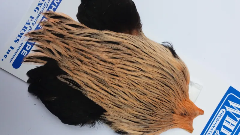 NEW for 2020 Whiting Freshwater Streamer Rooster Capes in silver badger dyed in a great range of colours. A smaller Cape than the American Badger Cape but quite a bit bigger than the Brahma Rooster Capes and a lot more densely hackled so with a lot more hackles per square cm the cost per fly tumbles!! The Freshwater Streamer cape as centre quills that are a lot finer than the American rooster so making them easier to wind. If you’re going to die a range of silver badger capes in light colour it’s got to be the perfect badger with nice white tips so the dye takes very well to the ultimate contrast between the black centre and dyed tips! Size wise they will go from a 14-8 approx. With such strong colours we can see this cape being a big seller.