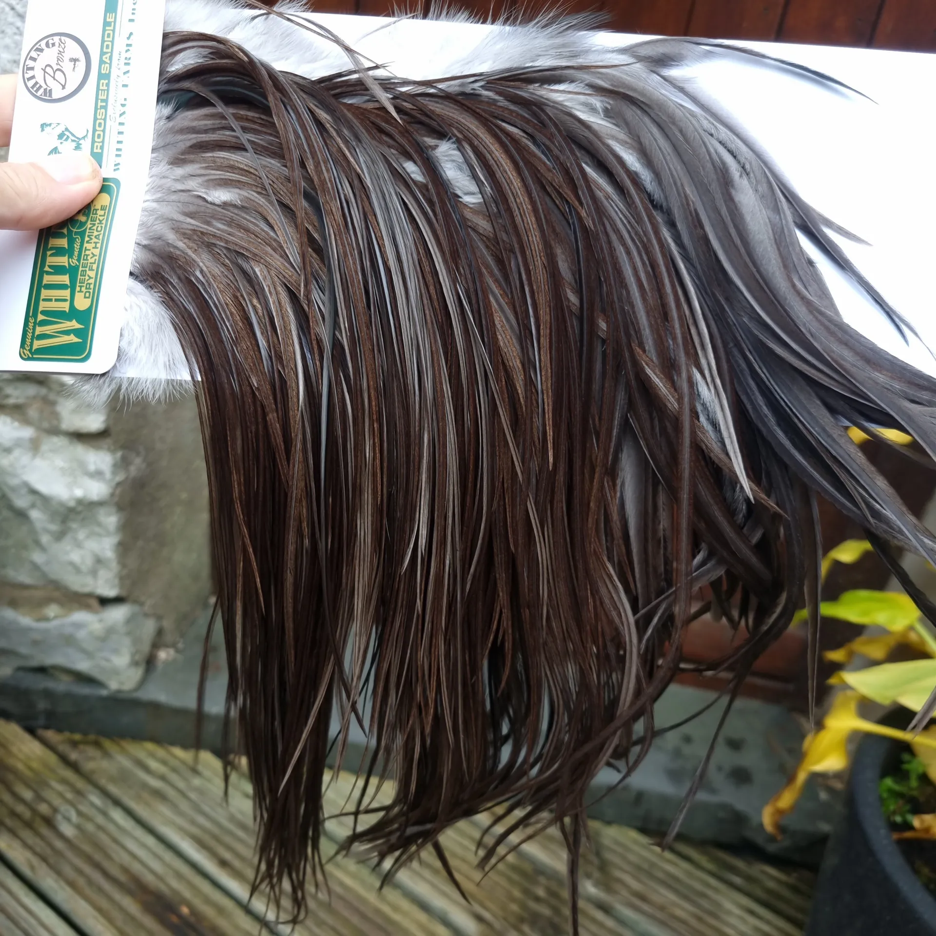 So the Hebert Miner is a bigger Rooster and with longer legs you get longer hackles and a bigger pelt, these Bronze Grade Saddles are massive. You really do need to look at all the images provided to get a true idea of the size of these saddles. What size will they tie well it seems to depend on Colour so each colour will have an average size range but from the colours available it’s looking like 10-12-14 so perfect for Parachute hackles!! Like I say they complement the Whiting Range rather than fighting for the same market sector!!!! But to be honest with this range it’s all about the natural colours and especially the DUNS!!!!