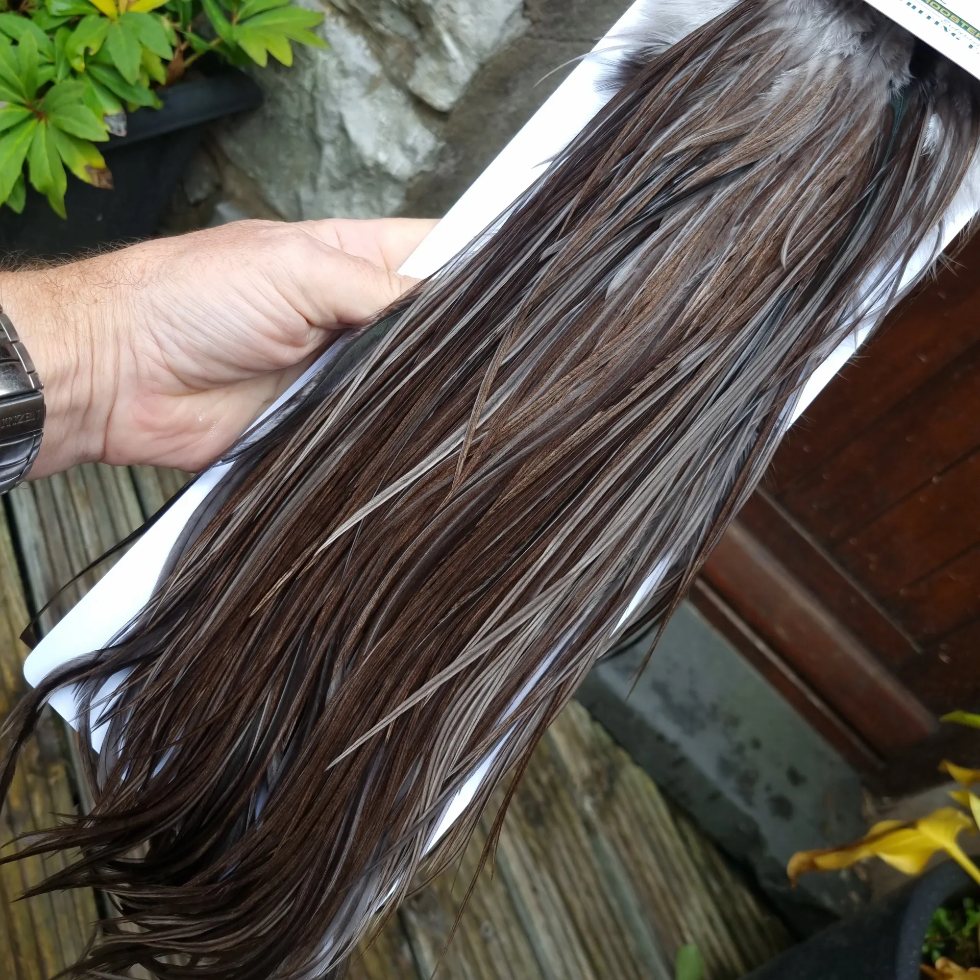 The Legendry Hebert Miner Dry Fly Hackles come in a stunning range of Natural Colours, as with all Genetic hackles they are a work in progress with this blood line starting in 1954 by Andy Miner. Legendry because of the range of natural brown and gray duns as well as a stunning mix of other colours only found with the Hebert Miner Birds!!! Colour is so important with this range but you are also getting dry fly hackles of the HIGHEST QUALITY with fine supple quills that make wrapping effortless!! A High Barb count ensures you get a lot of hackle on the fly with a few turns which means you will get more flies per hackle!!!
