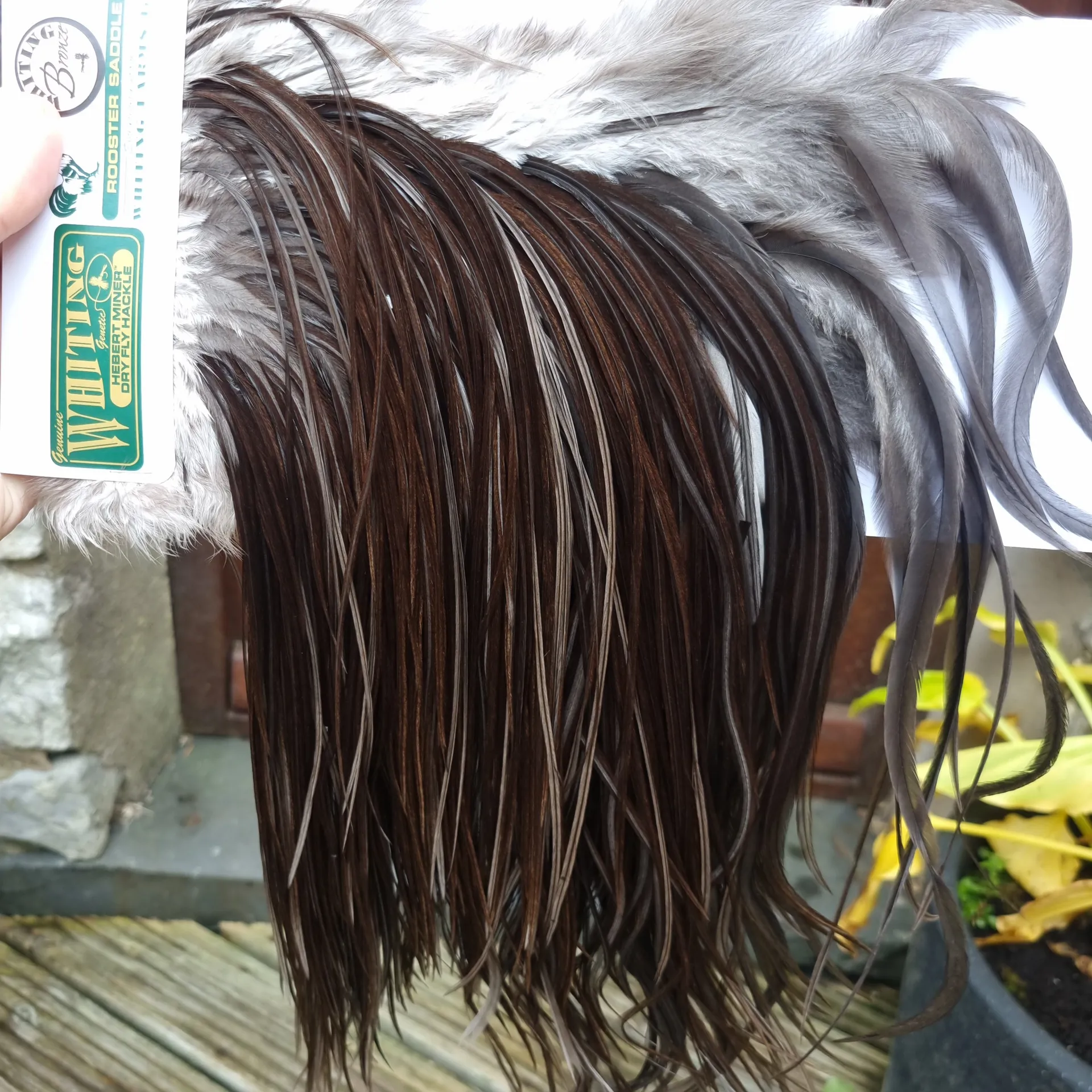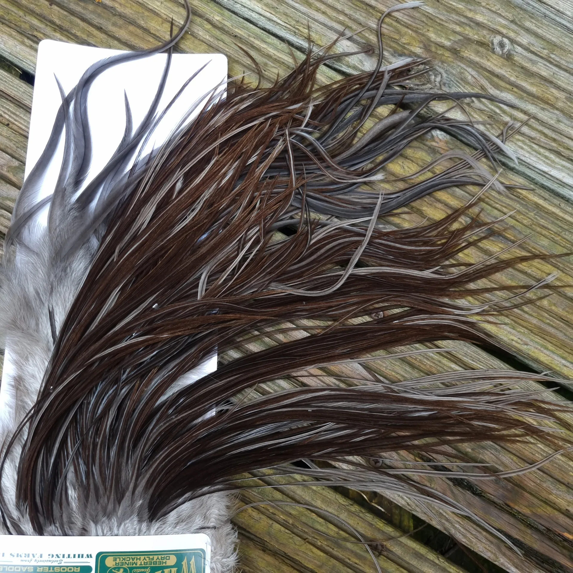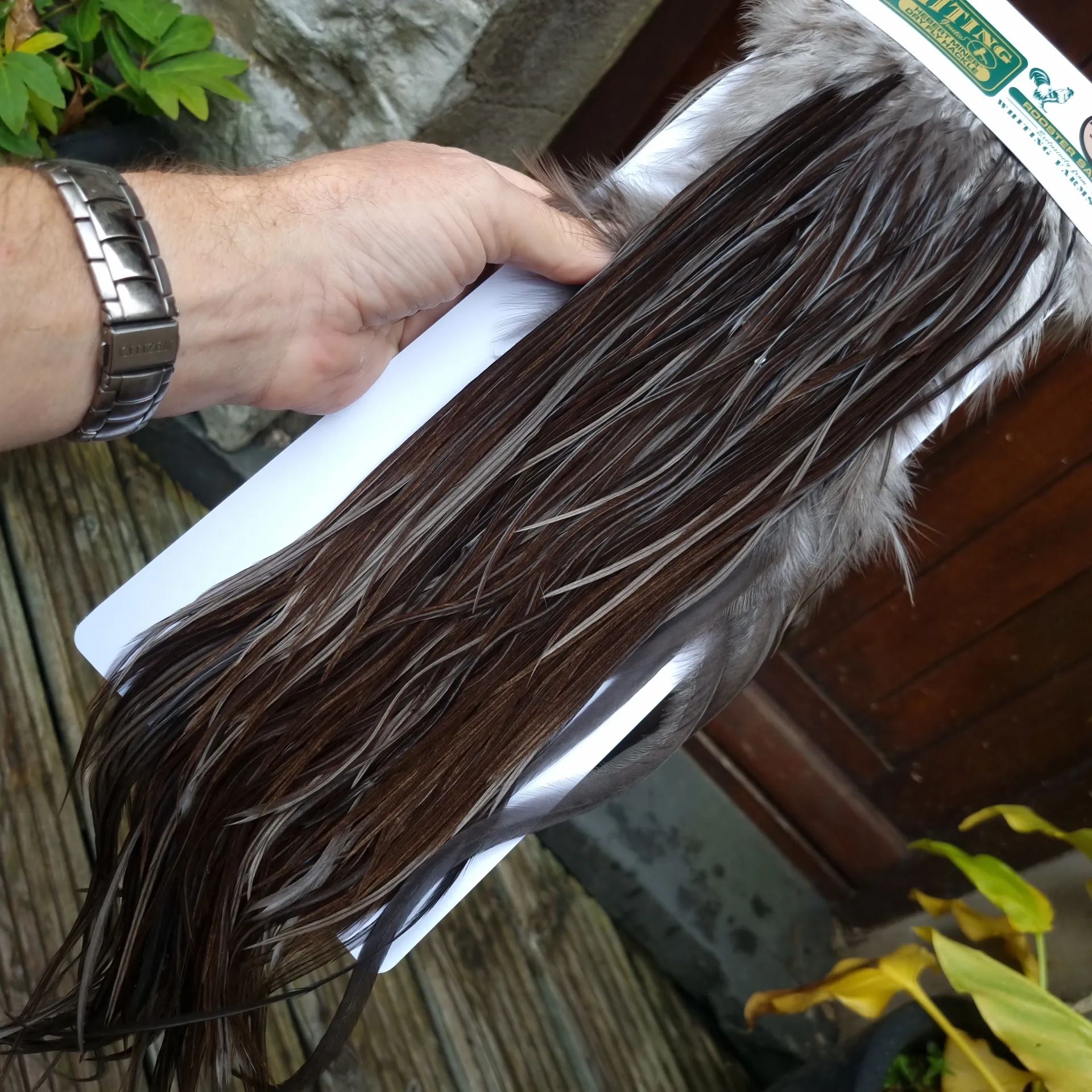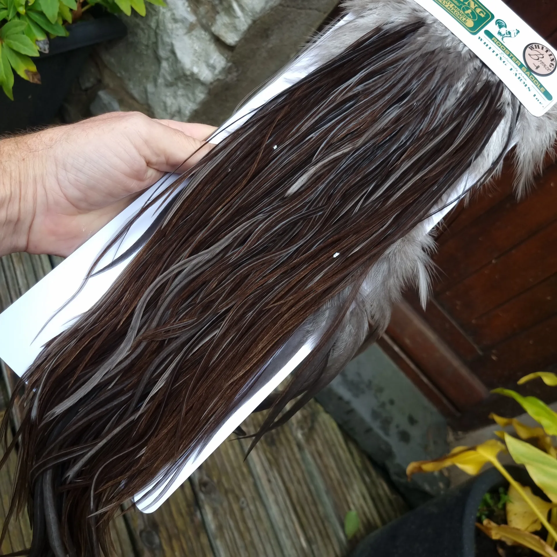 The Legendry Hebert Miner Dry Fly Hackles come in a stunning range of Natural Colours, as with all Genetic hackles they are a work in progress with this blood line starting in 1954 by Andy Miner. Legendry because of the range of natural brown and gray duns as well as a stunning mix of other colours only found with the Hebert Miner Birds!!! Colour is so important with this range but you are also getting dry fly hackles of the HIGHEST QUALITY with fine supple quills that make wrapping effortless!! A High Barb count ensures you get a lot of hackle on the fly with a few turns which means you will get more flies per hackle!!!