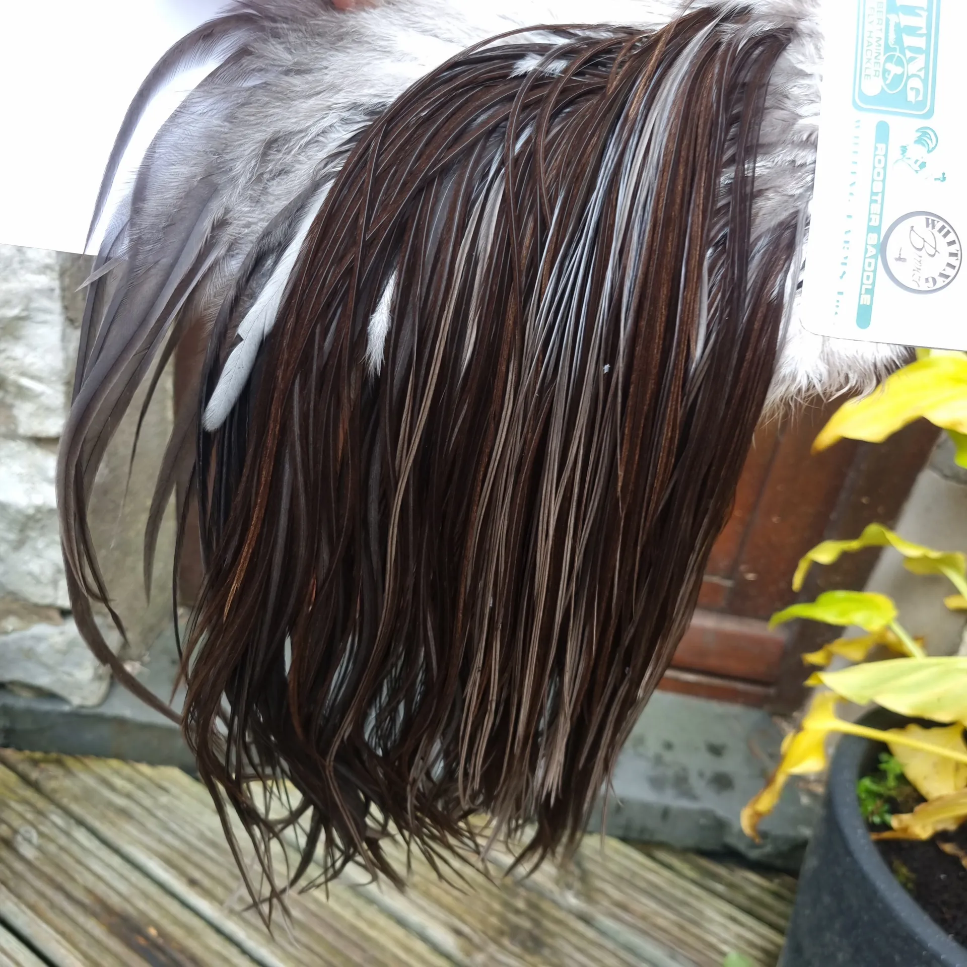 So the Hebert Miner is a bigger Rooster and with longer legs you get longer hackles and a bigger pelt, these Bronze Grade Saddles are massive. You really do need to look at all the images provided to get a true idea of the size of these saddles. What size will they tie well it seems to depend on Colour so each colour will have an average size range but from the colours available it’s looking like 10-12-14 so perfect for Parachute hackles!! Like I say they complement the Whiting Range rather than fighting for the same market sector!!!! But to be honest with this range it’s all about the natural colours and especially the DUNS!!!!