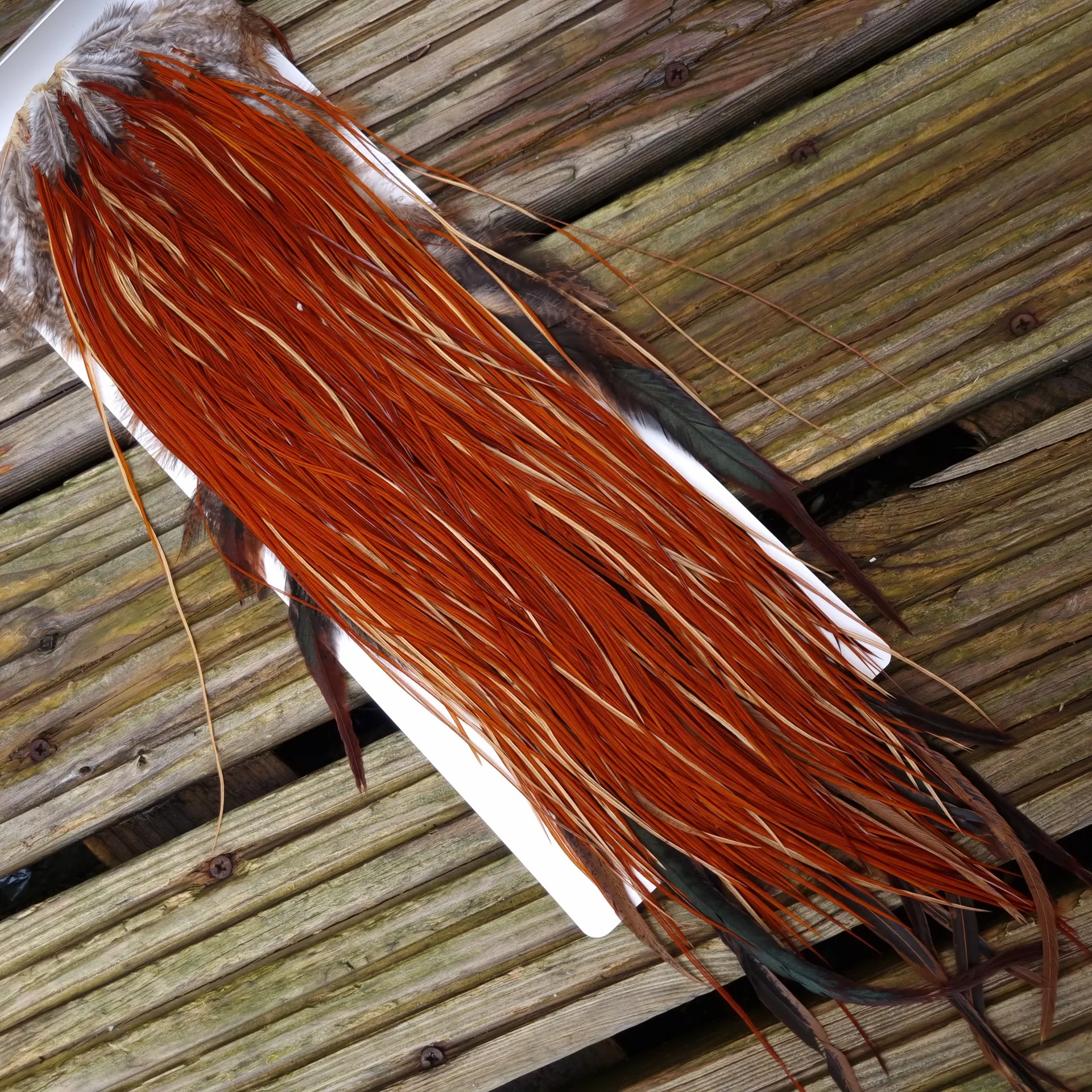 Whiting Heritage Hackles Rooster Saddle in Mixed Colours A Medium to Dark Red Game and tying approx 12/14/16/18. Heritage Saddles always deliver on colour, density of hackle, hackle length and the actual saddle size!!! Looking for dry fly hackles in Red Game of the highest quality you have found the perfect Saddle.Look at the images and you can see how densely hackled saddle A is with hackles that go on for 12-17" (31-43cm). As always with Heritage Saddles you BUY the Saddle in the image at Lakeland!!!
