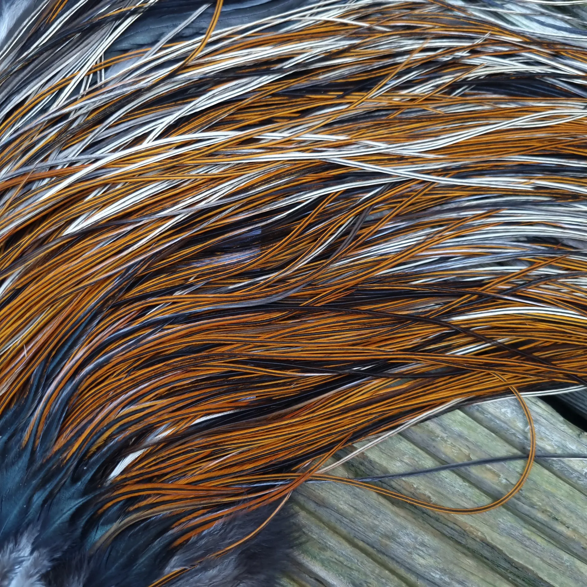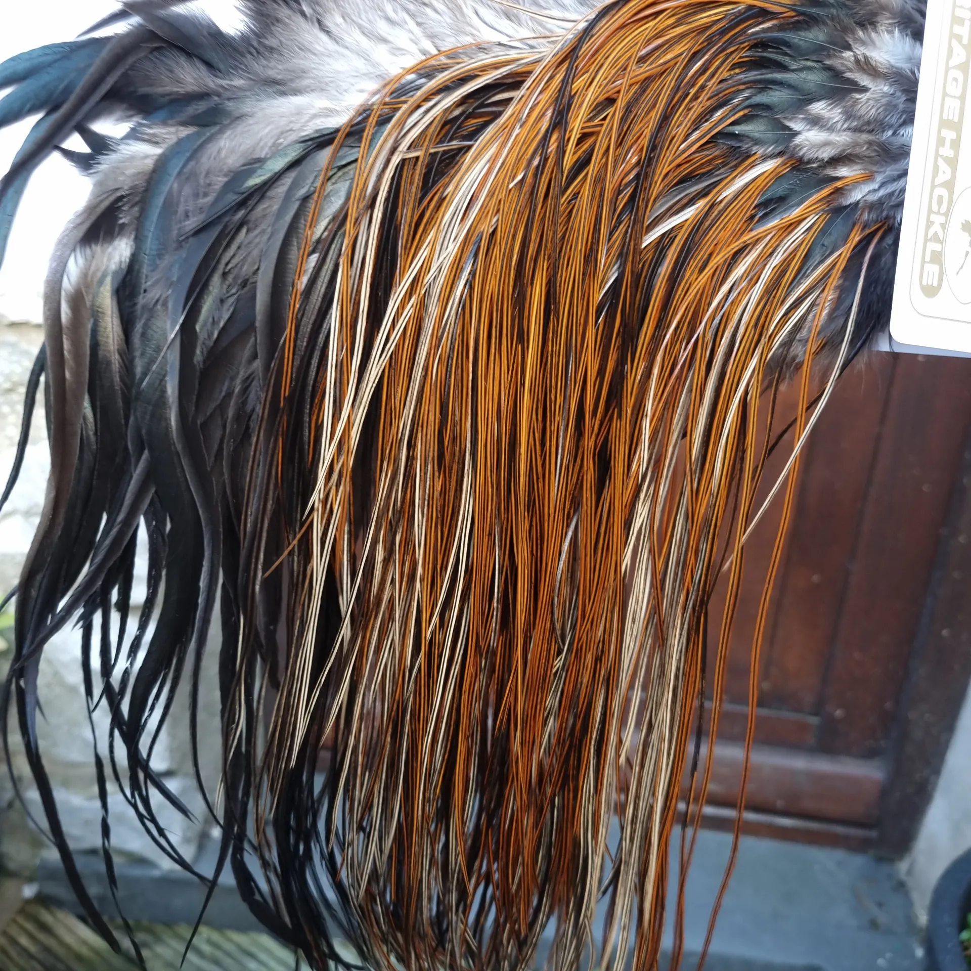 Whiting Heritage Hackles Rooster Saddle in Mixed Colours B Light, Medium and Speckled Furnace Tying Approx 16/18/20. WOW what a saddle it’s stuffed with a cracking range of Furnace Hackles in different shades and as YOU CAN SEE BY THE SIZING it’s TYING SMALL for a Heritage Saddle, but this is why we size them so you can select the perfect saddle for your needs. B isso densely hackled with hackles that range from approx.. 10-16” (26-41cm) as YOU CAN SEE BY THE IMAGES!! Colour wise it’s Cree and splashed with Furnace. SADDLE B is a real stunnerand a fine example of a Heritage FurnaceSaddle with those hackles capable of tying a dozen or more flies each.As with all Heritage saddles this is a buy what you see product!!!Asnigekeeps saying THE HERITAGE RANGE IS PRODUCING THE BEST NATURAL COLOURS!!!!!!!!!!