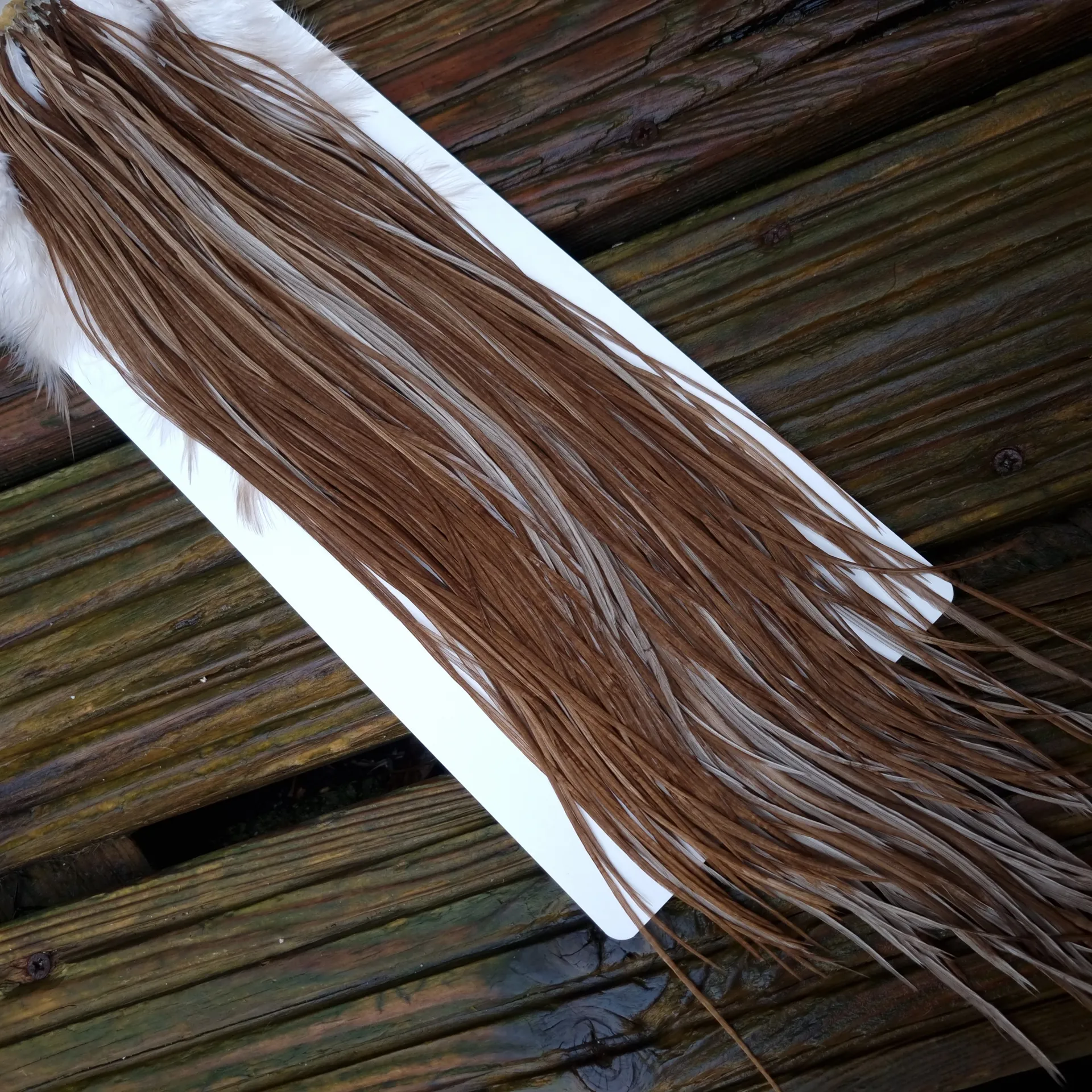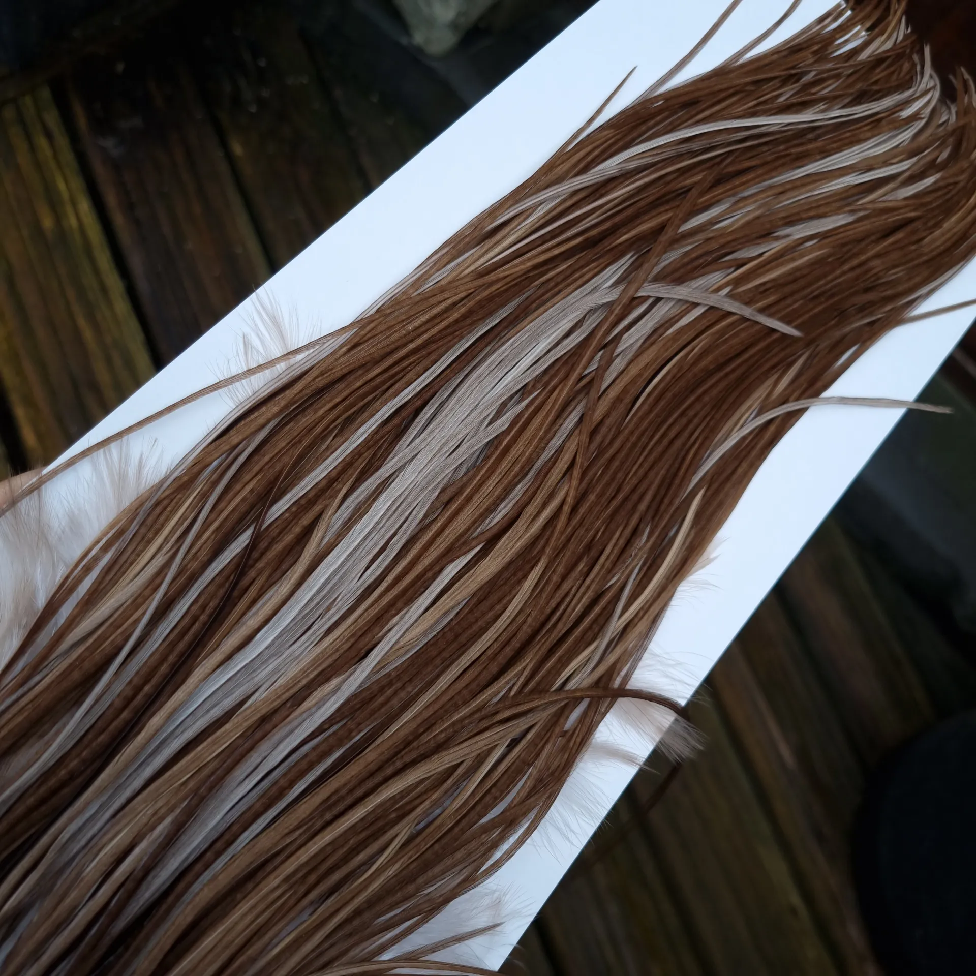 Whiting Heritage Hackles Rooster Saddle in Mixed Colours C Natural Medium Brown Dun Tying Approx 10/12/14/16this is aCrackingSADDLE and ONE OF THE SADDLES that makes the Heritage range so SPECIAL!!!Areally niceNatural Medium Brown Dun and tying popular fishing sizes and a cracking saddle for those looking for Natural Duns, as you canseethey are availablewe justdon’tget many!!!Densely hackled with hackles that average 12-18” (31-46cm) long andstuffedwithStunningNatural Dun Hackles.Takea good look at all the images provided because this saddle is a stunner!!Rememberyou'rebuying the saddle in the image!!!