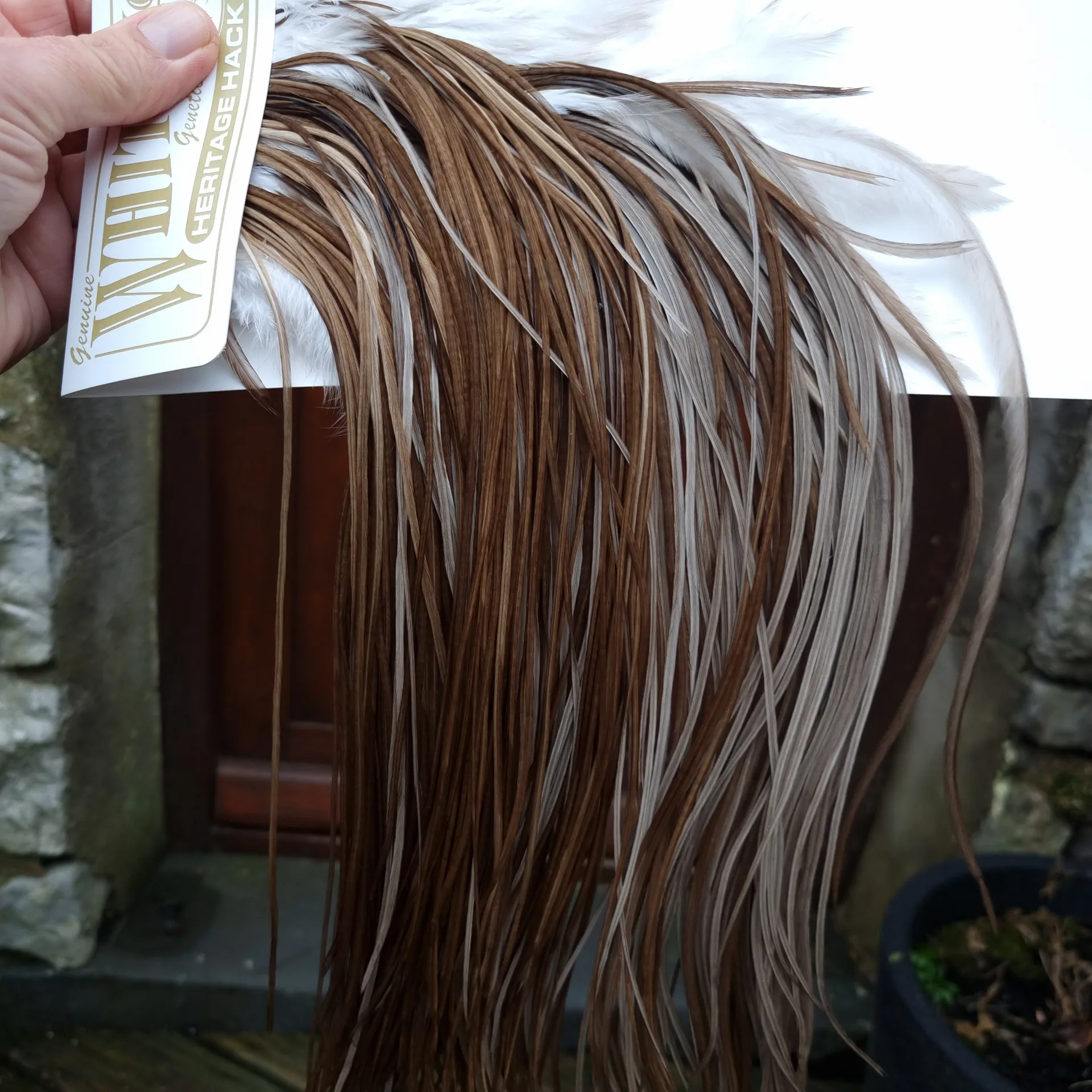 The Whiting Heritage Hackle Saddles are the colours of yesteryear from the days of Ted Hebert and Andy Miner and then the quality has been improved by Dr.Tom Whiting with his selective breeding program. The Heritage hackle is all about the most sought after hard to get colours like Speckled Badger, Speckled Duns and the Champagne range of colours and those very special Unique Variants that you only see once in a while!! Owning a Heritage Hackle Saddle is something to treasure as the colouration on most is unique with each saddle being very special in its own right.