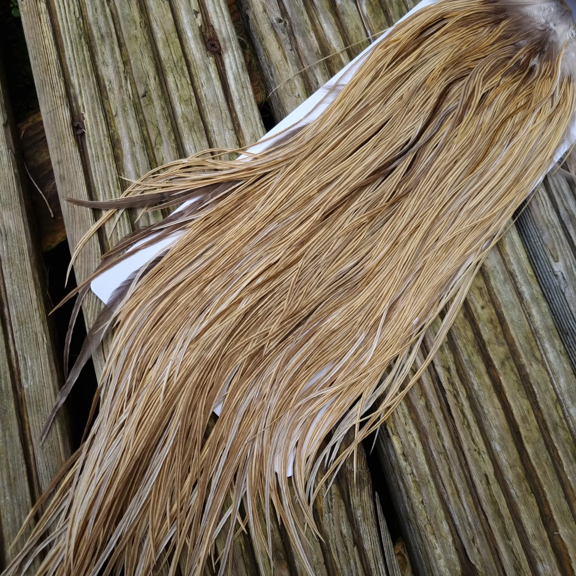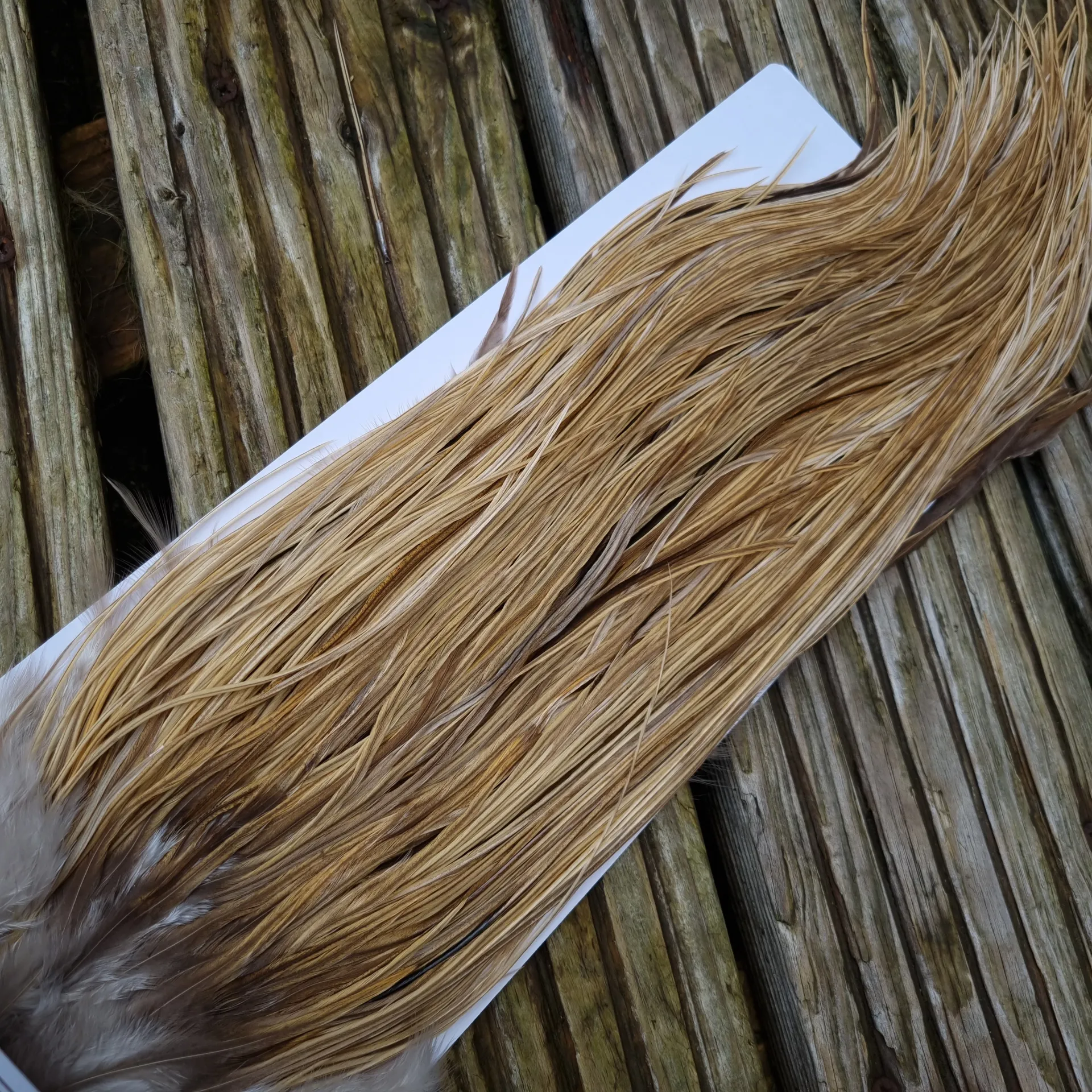 The Whiting Heritage Hackle Saddles are the colours of yesteryear from the days of Ted Hebert and Andy Miner and then the quality has been improved by Dr.Tom Whiting with his selective breeding program. The Heritage hackle is all about the most sought after hard to get colours like Speckled Badger, Speckled Duns and the Champagne range of colours and those very special Unique Variants that you only see once in a while!! Owning a Heritage Hackle Saddle is something to treasure as the colouration on most is unique with each saddle being very special in its own right.Whiting Heritage Hackles Rooster Saddle in Mixed Colours HLight/Medium and Dark Champagne Badger Tying Approx. 12/14/16.What a range of colours this saddle is displaying and talk about colour shifting, as the light changes you will seean all-new range of colours but that is why these Champagne Colours are socooland this saddledelivers a full range of Champagne Shades!!!This is an awesomesaddleand somebody is going to bevery happyand like all Heritage saddlesit’sdensely hackled with hackles that average 12-18” (31-51cm). As always with the Heritage productsyou’rebuying the saddle in the image!!