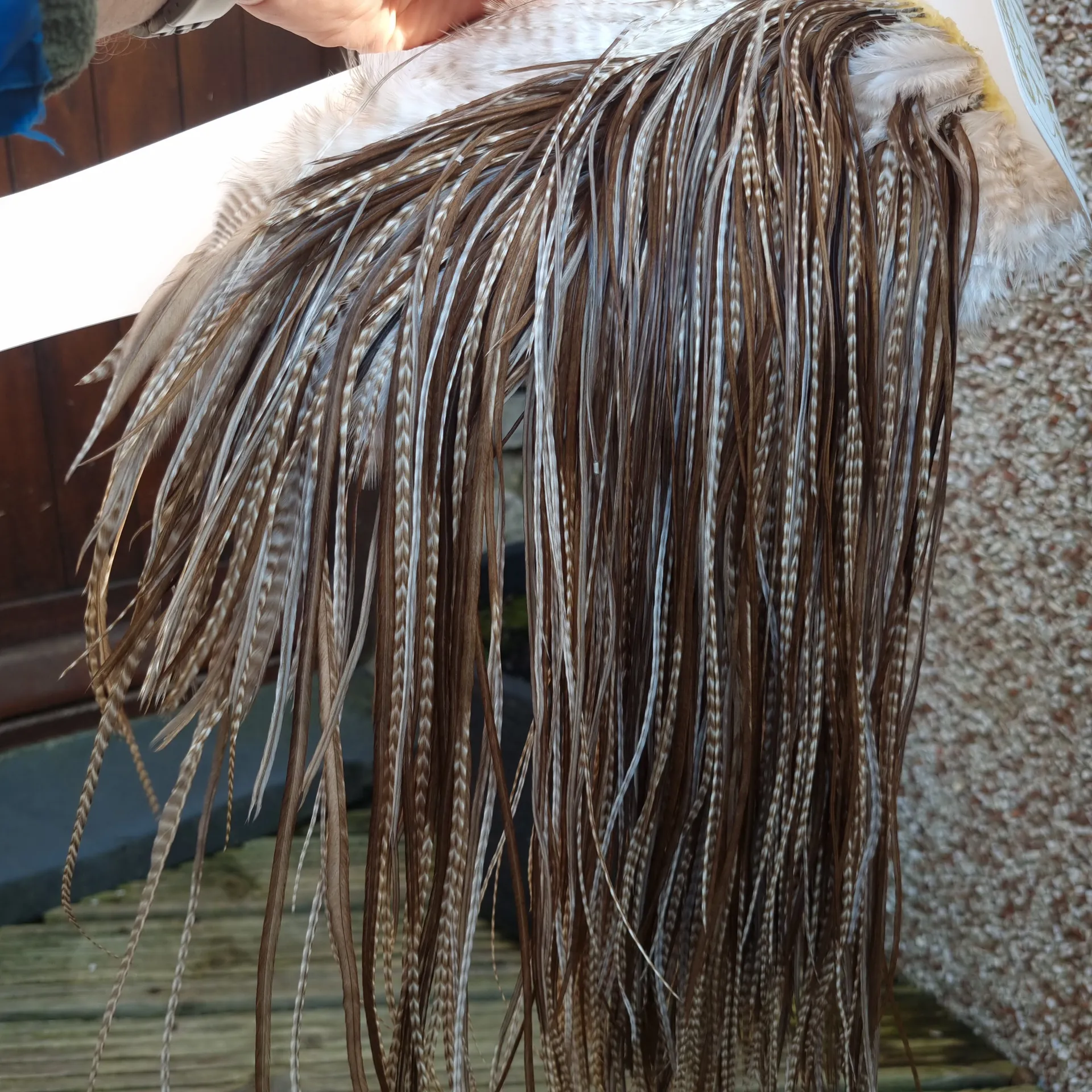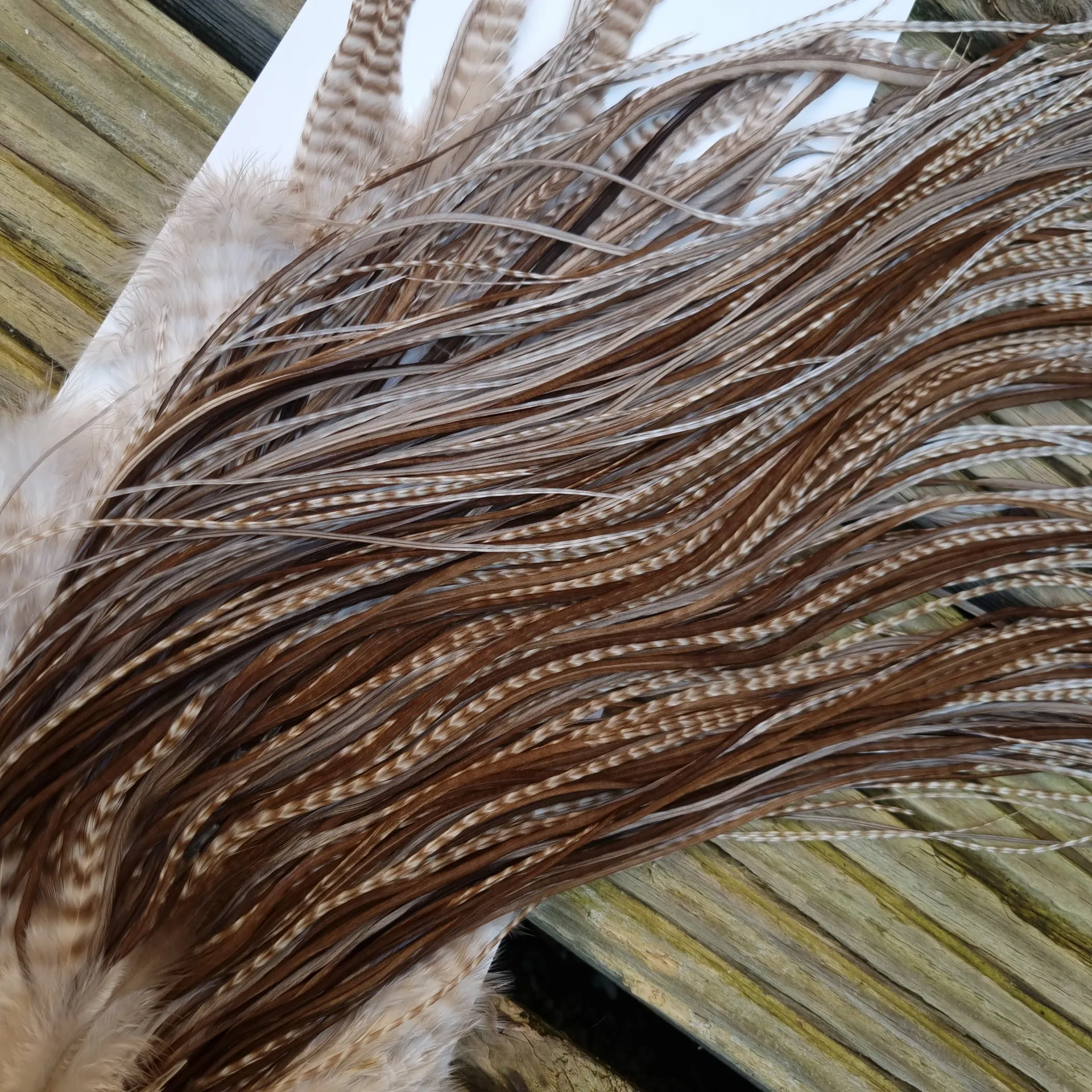 Whiting Heritage Hackles Rooster Saddle in Mixed Colours J Dun Grizzly/Light/Medium/Dark Brown Dun Tyingapprox.12/14/16 and YOU will find a few 18/20.Saddle J is a cracker covering the right range of sizes!! Saddle J is going to cover the FULL range of Natural Brown Duns plus the Dun Grizzly so basically this one saddle will give at least 4 colours. Like we keep saying only the best saddles and Capes make the heritage range so you will never be disappointed!!!Approx. Hackle length is 12 to 18” (31-46cm) Click through those images and take a good look before you buy!!!
