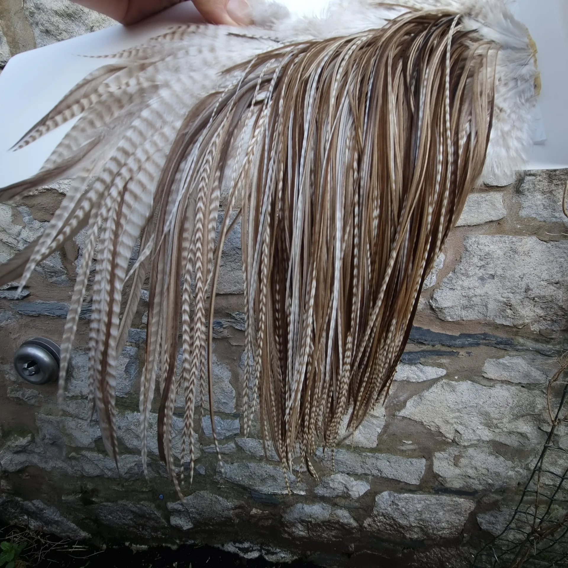 Whiting Heritage Hackles Rooster Saddle in Mixed Colours K Dun Grizzly/Light/Medium/Dark Brown Dun Tying Approx 12 /14/16. K is very similar to saddle J giving a cracking range of Natural Brown Duns in different shades plus the bonus ball Dun Grizzly!!! These saddles are very nice giving 4-5 colours on each saddle making them excellent value for money. DENSELY Hackled Saddle with hackles that are 13-16" approx. Take a good look at all the images provided. Remember you buy the saddle in the image at Lakeland!!