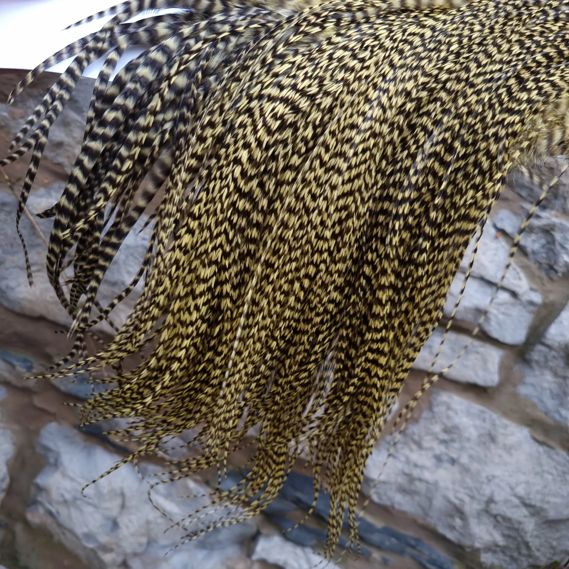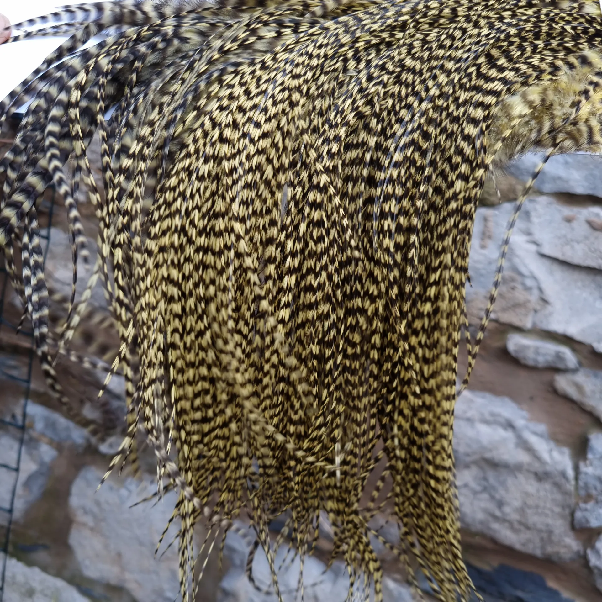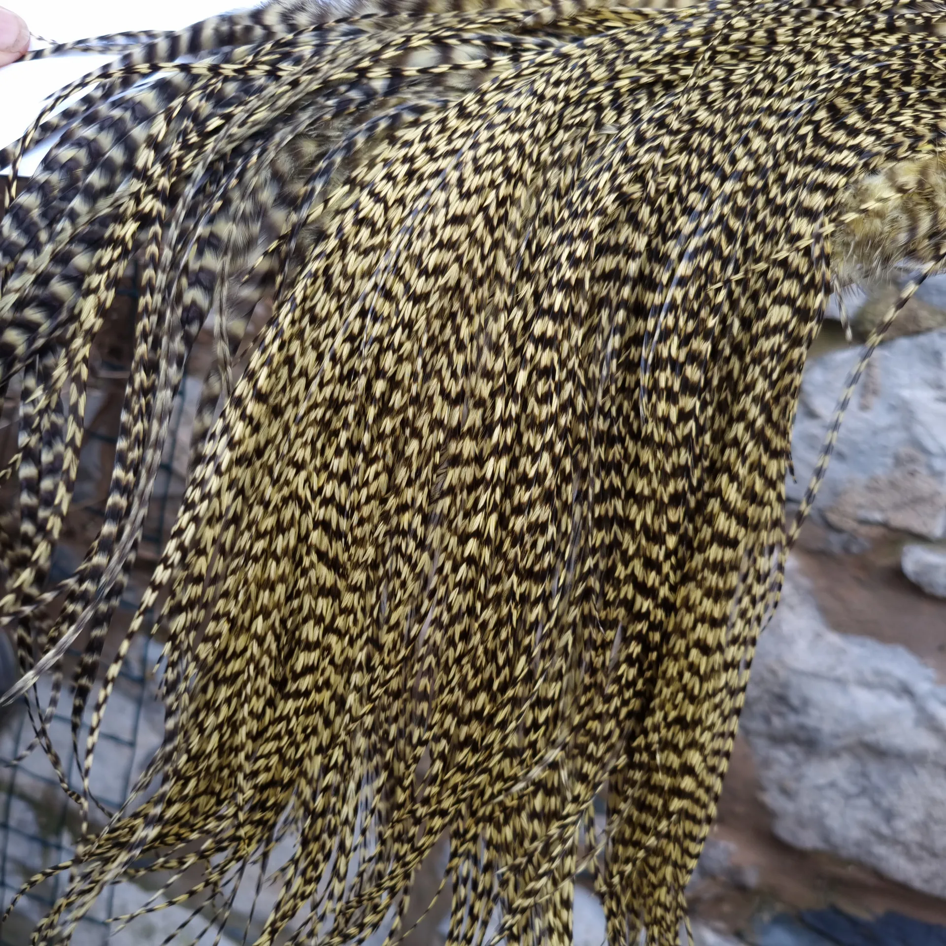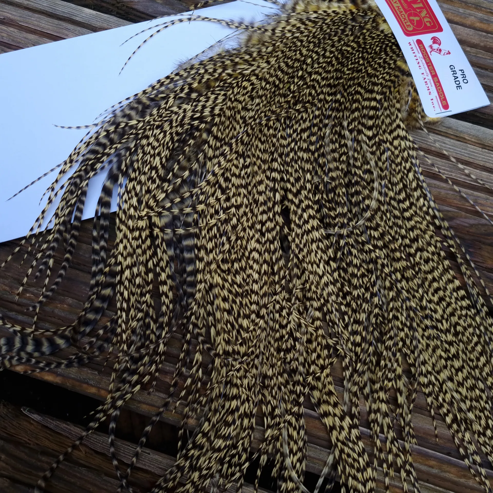 Whiting Farms produce by far the very best Dry Fly Saddle hackles in the world with hackles that can reach 20 “ or more!! Just like the legendary Whiting Dry Fly Capes Whiting Rooster Saddles are graded by the medal system with Platinum being the panicle of genetic breeding followed by Gold, Silver, Bronze and PRO-GRADE with saddles being graded on saddle size, Density of hackle and length of hackle and within in this they are split into a standard Gold, Silver, Bronze or Pro-Grade saddle and Midge Sized Saddles predominately tying 16 into the 20’s or smaller.