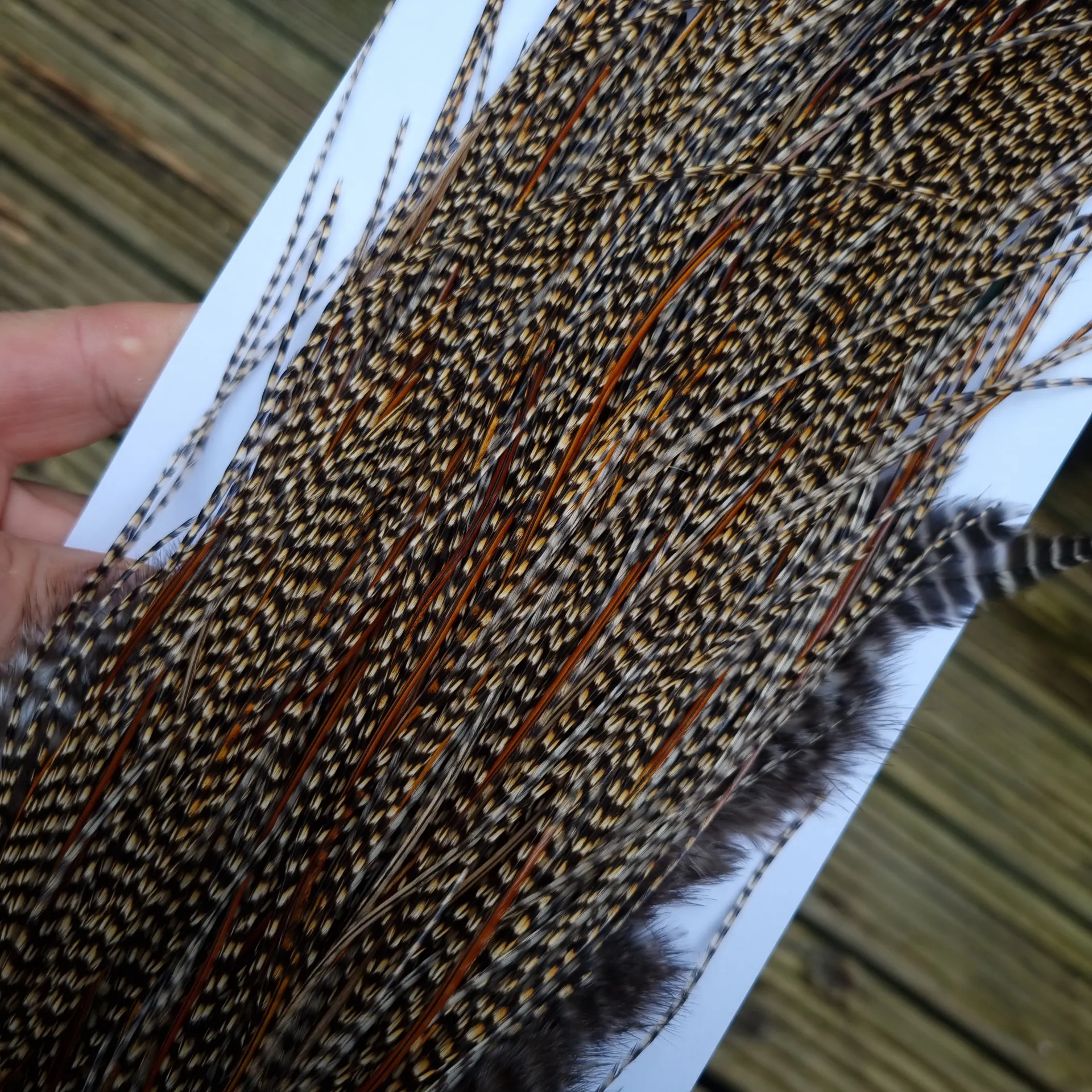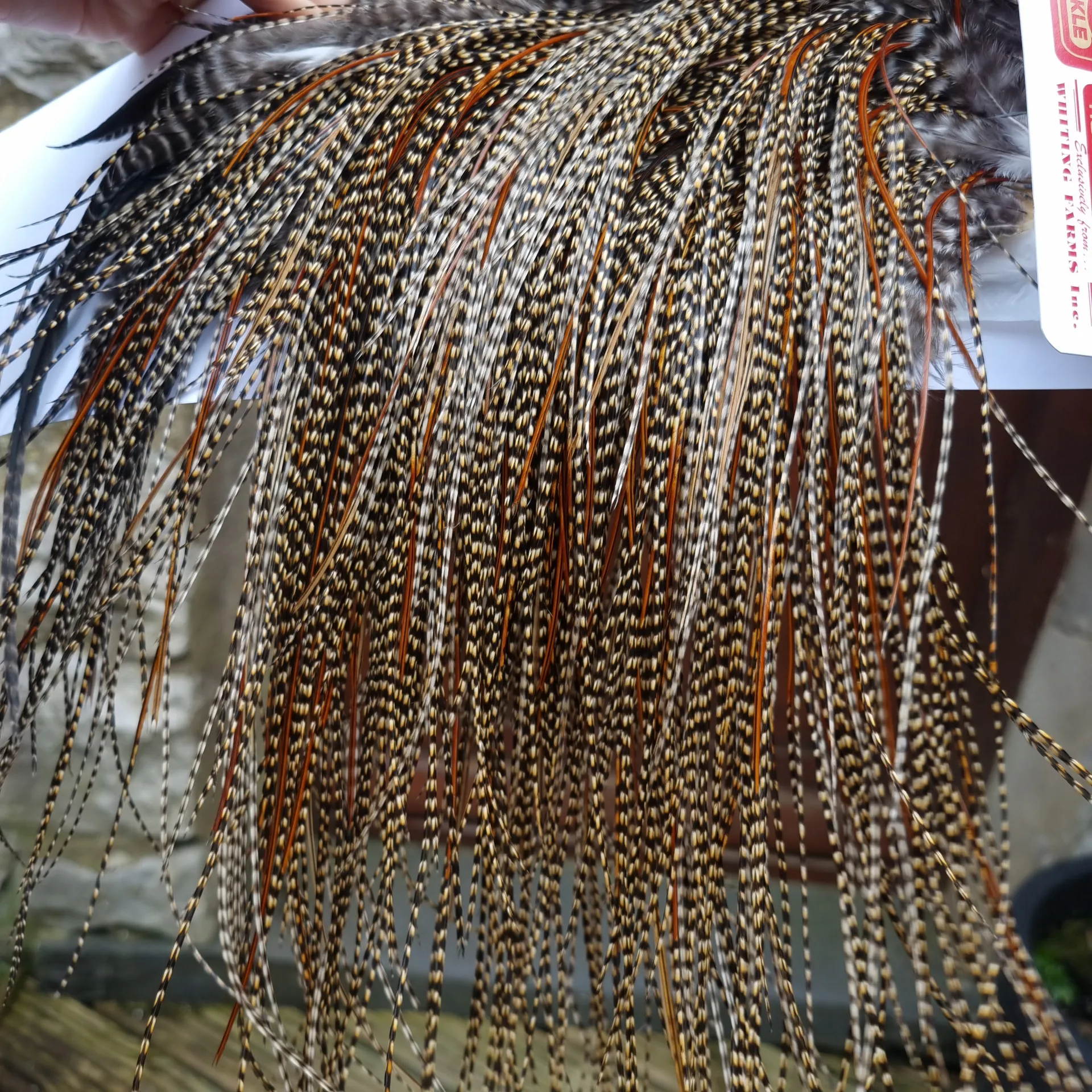 Whiting Pro-Grade Midge Dry Fly Rooster Saddle in CREE C Approx. Tying Sizes 14-16-18 with a few going smaller, WOW you just have to love these CREE Saddles, they are all special in their own way!!! CREE C is one of the Golden Cree Saddles with a very Strong Ginger Fleck, it’s a Stunner. Take a look at the images and you will see what I’m talking about!! 95% Classic Cree and 5 % Furnace/Red Game, those Furnace are very nice. Size wise Saddle C is tying 14/16/18 approx. hackles and some going smaller!! Saddle C hackles average 12-15” (33-38cm) long hackles that will tie multiple flies, NO OTHER SADDLES LOOK LIKE Whiting Saddles but look at the images C is so Densely HACKLED!!!. The ONE every fly tier wants on the tying bench the classic CREE!!!! Look at the images and read the description to see what you will get!!! Remember THIS IS A BUY WHAT YOU SEE PRODUCT RANGE!!!!!