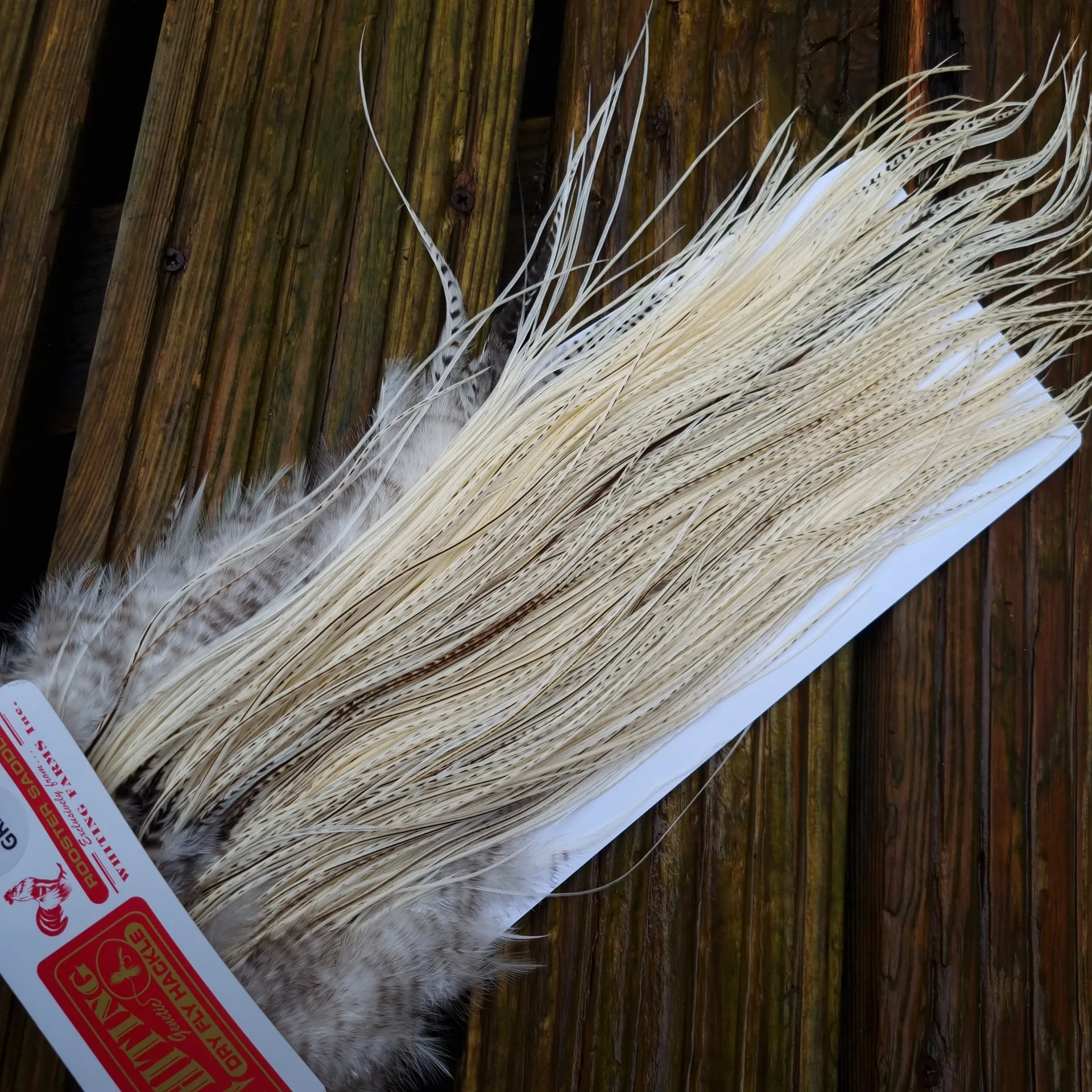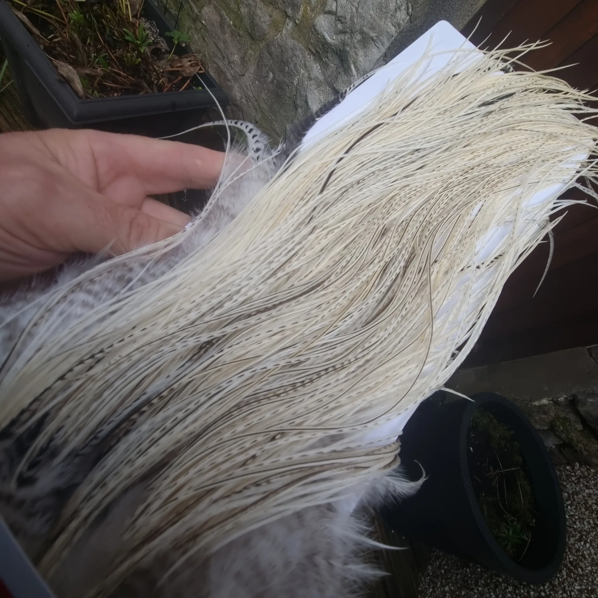 Whiting Pro-Grade Midge Rooster Saddle in Unique Variant A, Approx. Tying Sizes of 14/16/18/20 and you might find a few smaller!!!If you’re tying lots of small flies Whiting Pro-Grade Midge Saddles are by far the best value for money buy, long hackles make tying Lots of Midge Patterns easy!! With Lakeland making this a BUY what you See Product range and also sizing the saddle you won’t get a nasty surprise when it drops through the letter. Dyed saddles are very consistent in size, density of hackle and colour but NATURAL Coloured Saddles will always have some variation in colour!! The one thing Whiting don’t grade for is the size a specific SADDLE WILL TIE so nige as done this for you!!!!Remember this is A BUY WHAT YOU SEE PRODUCT RANGE and Sizing is approximant, Nige believes the size should be from the shank to the point and none of this 1 ½ to 2 times the hook shank!!!!
