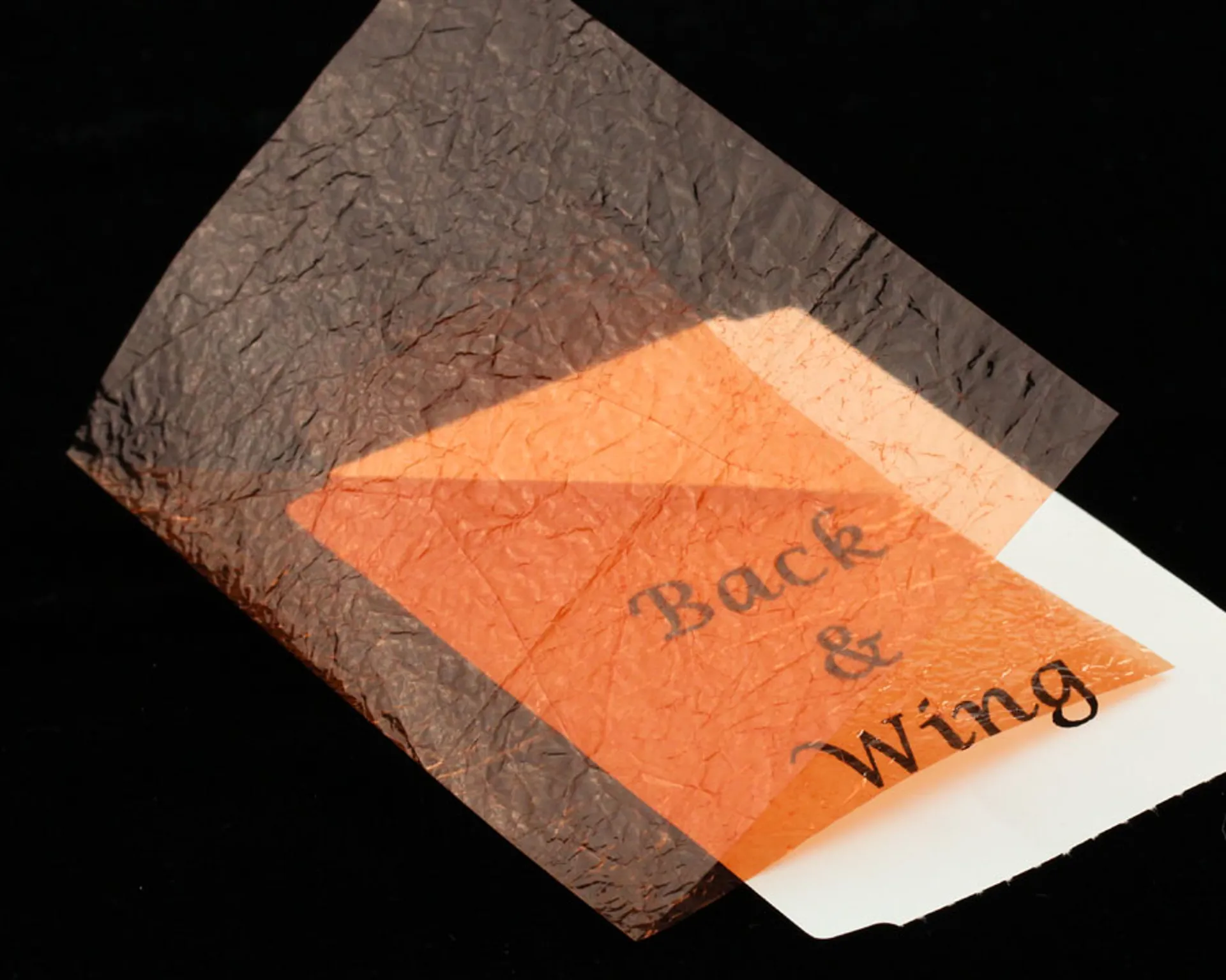 Fine translucent sheet. Perfect for backs, bodies, wings, shellbacks (carapaces) on crustaceans and other parts. This material will greatly increase the effectiveness of your flies.