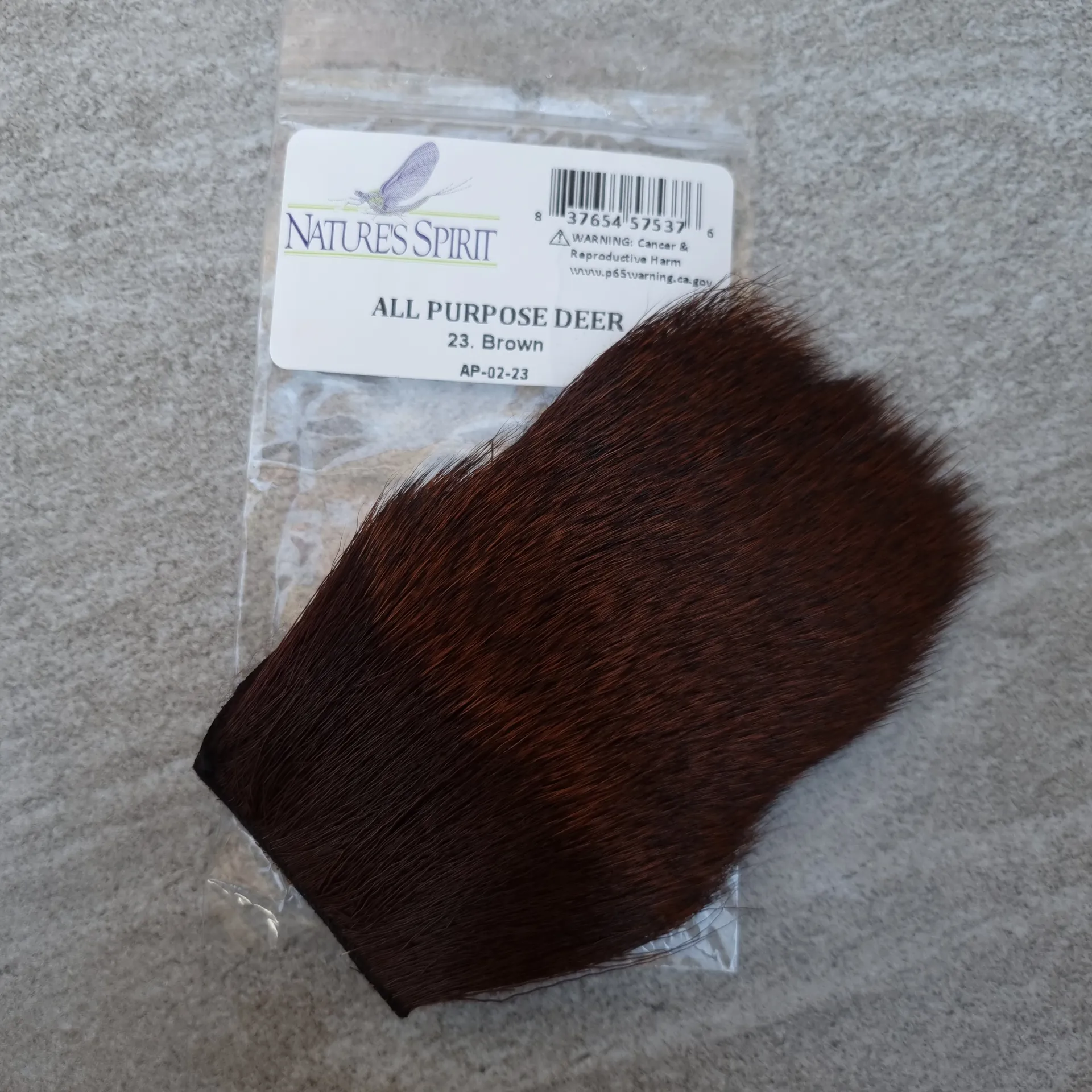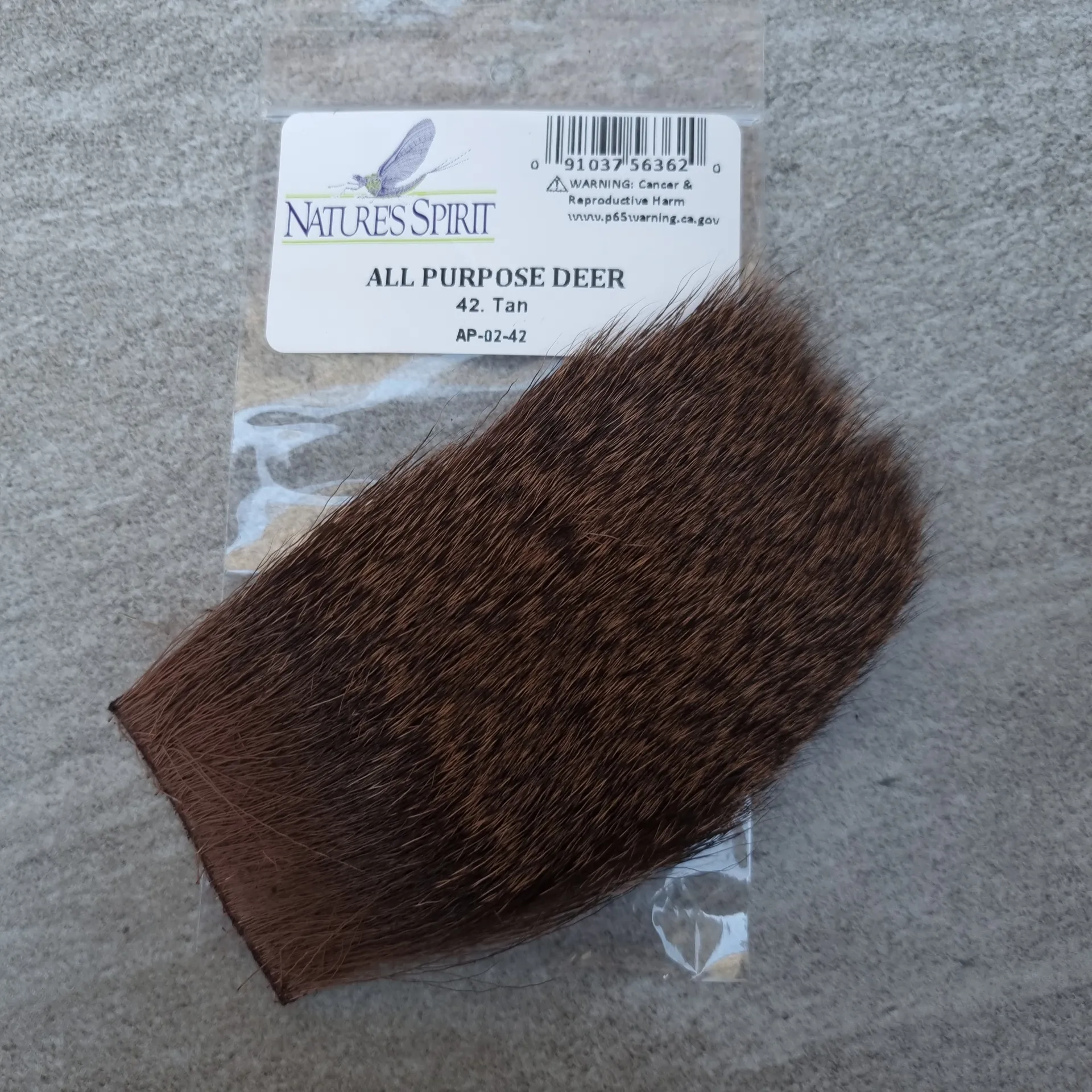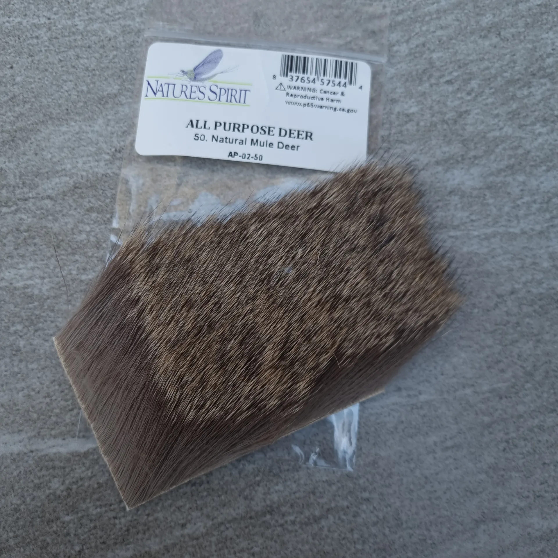 Nature’s Spirit All Purpose Deer Hair, is high-quality hair that can tie a variety of flies, yet fails t fit neatly into our other more specific categories. Every tier will find a use for this hair. The mule deer is one of my favorite because of the rich gray tones. 2”*3” patch.