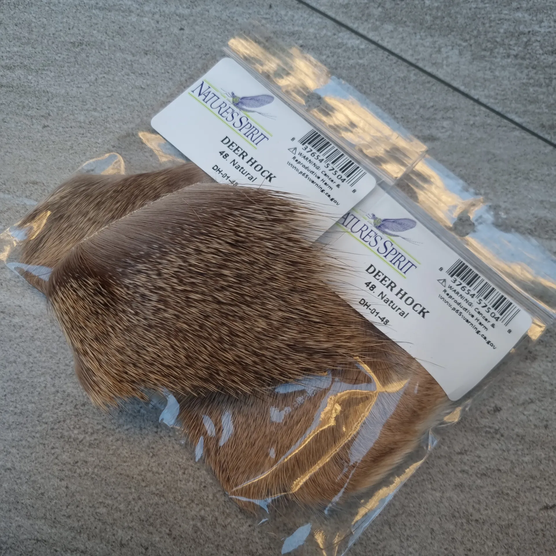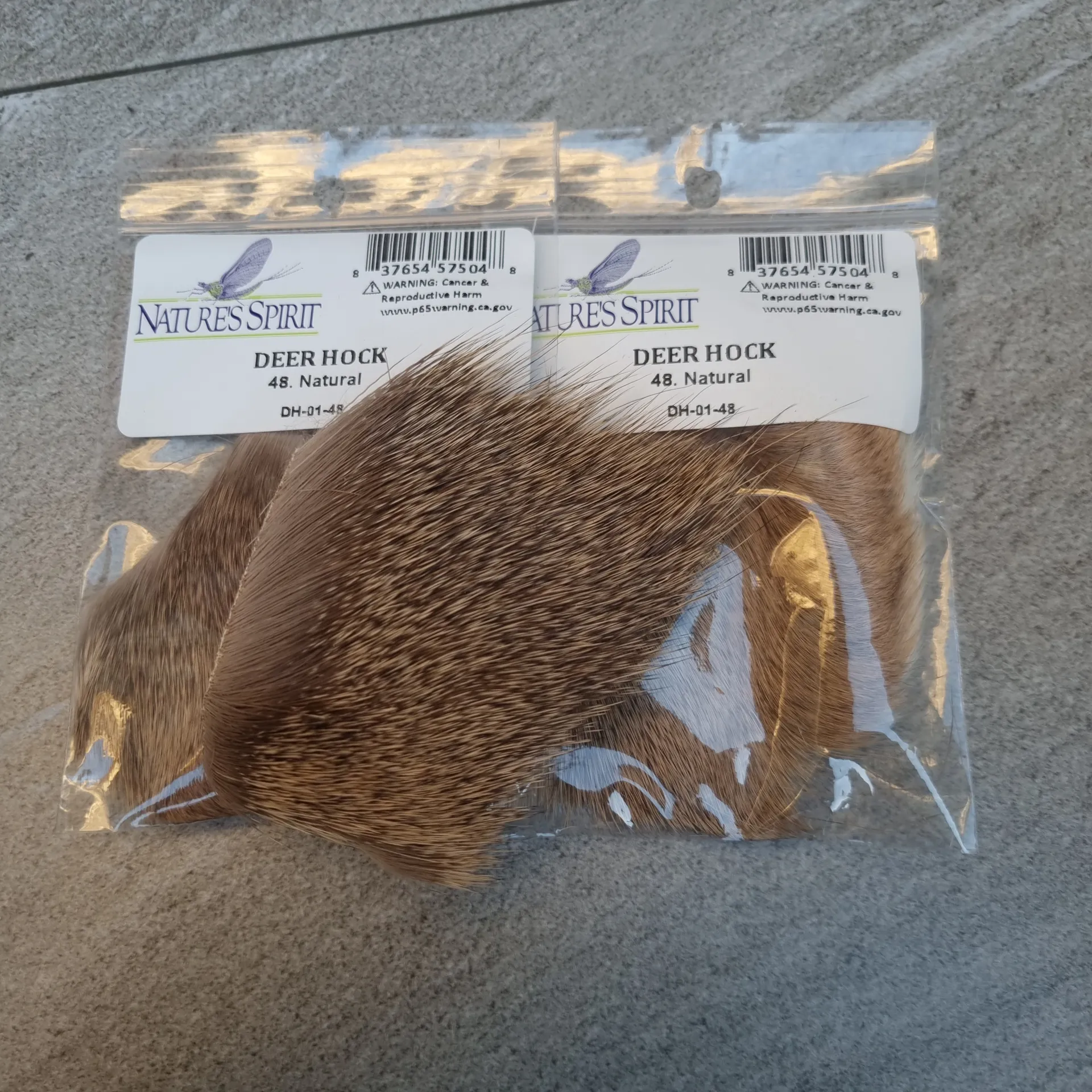 Nature’s Spirit Deer Hock comes primarily from early season Whitetails. It is finely barred with very short tips, with enough compression to make it ideal for small comparaduns, sparkle duns and caddis. 11/2"*2" patch.