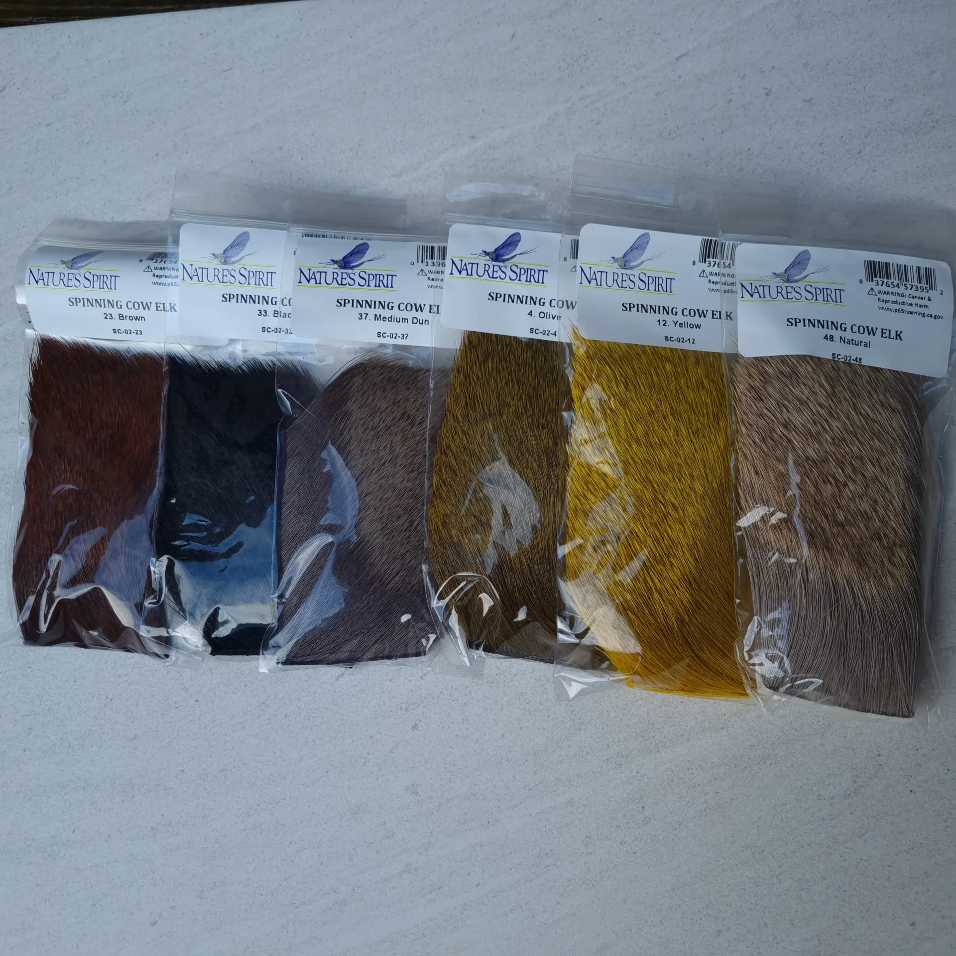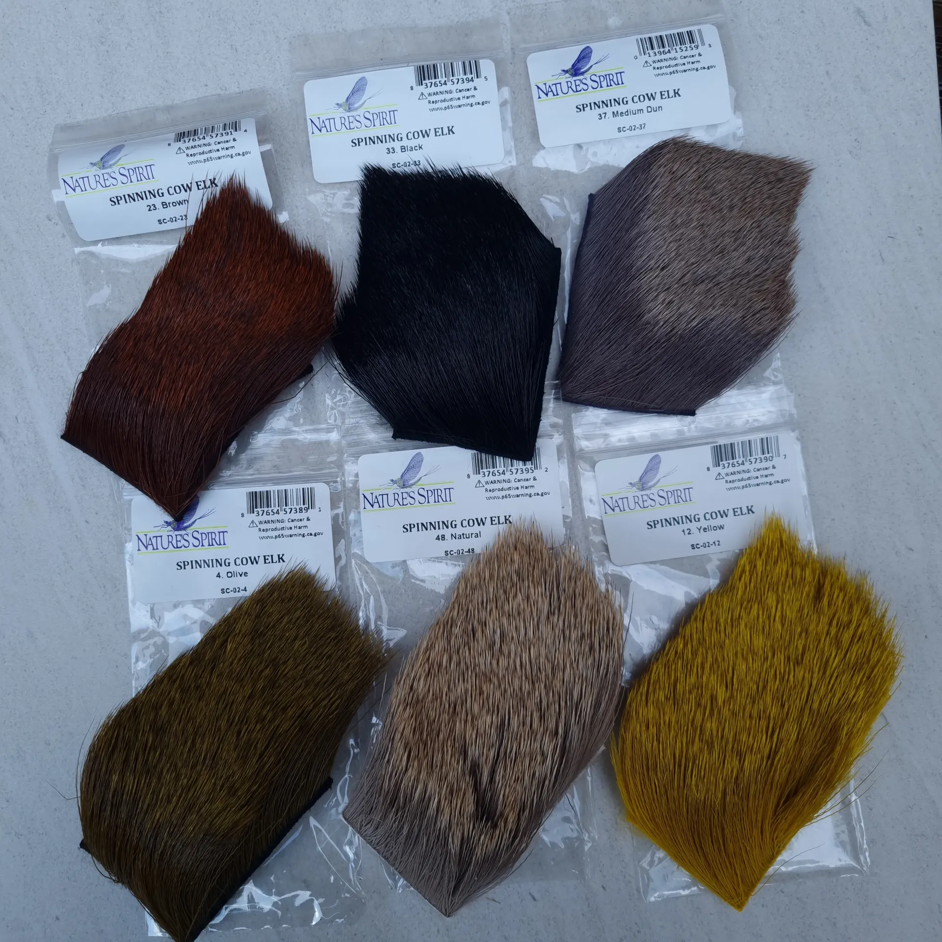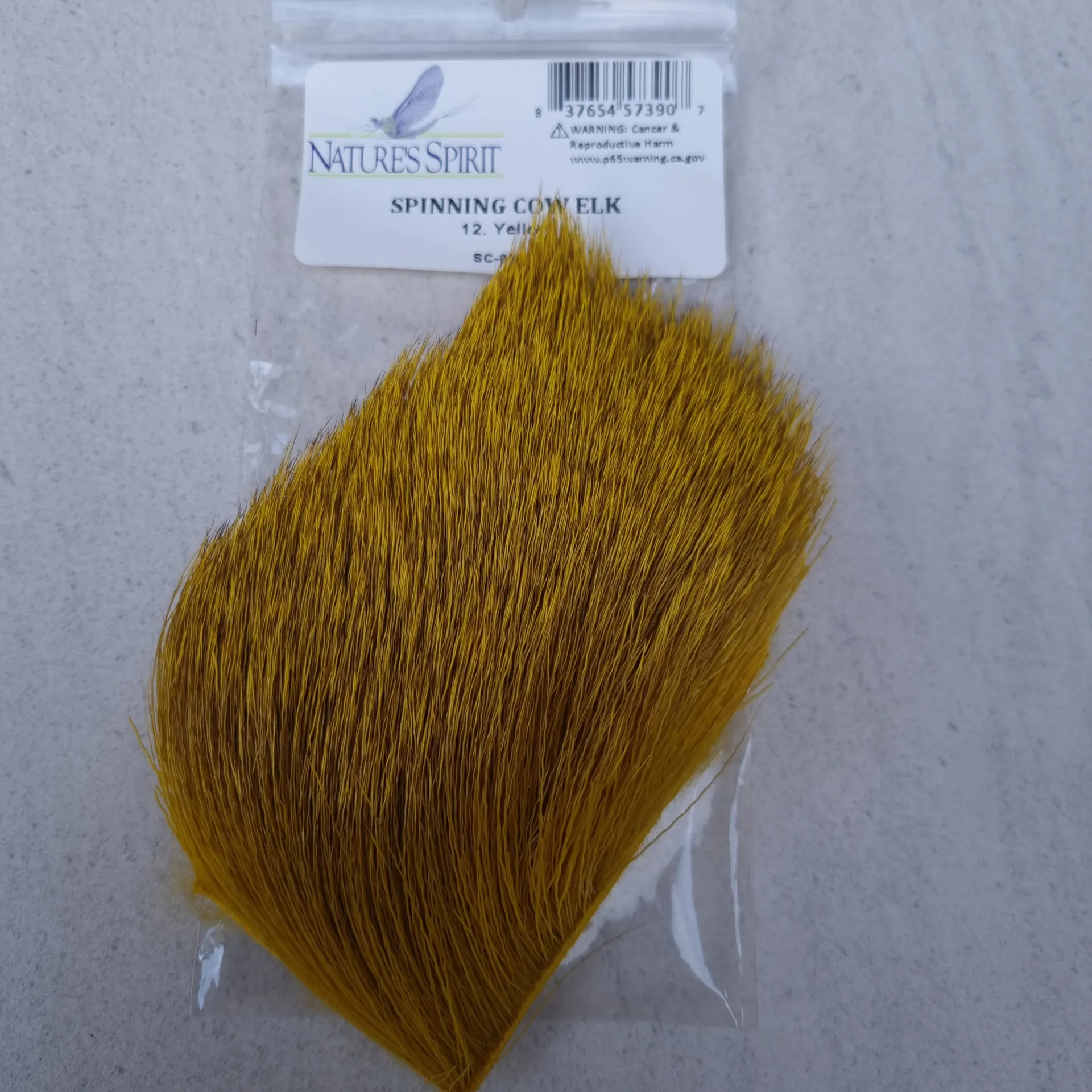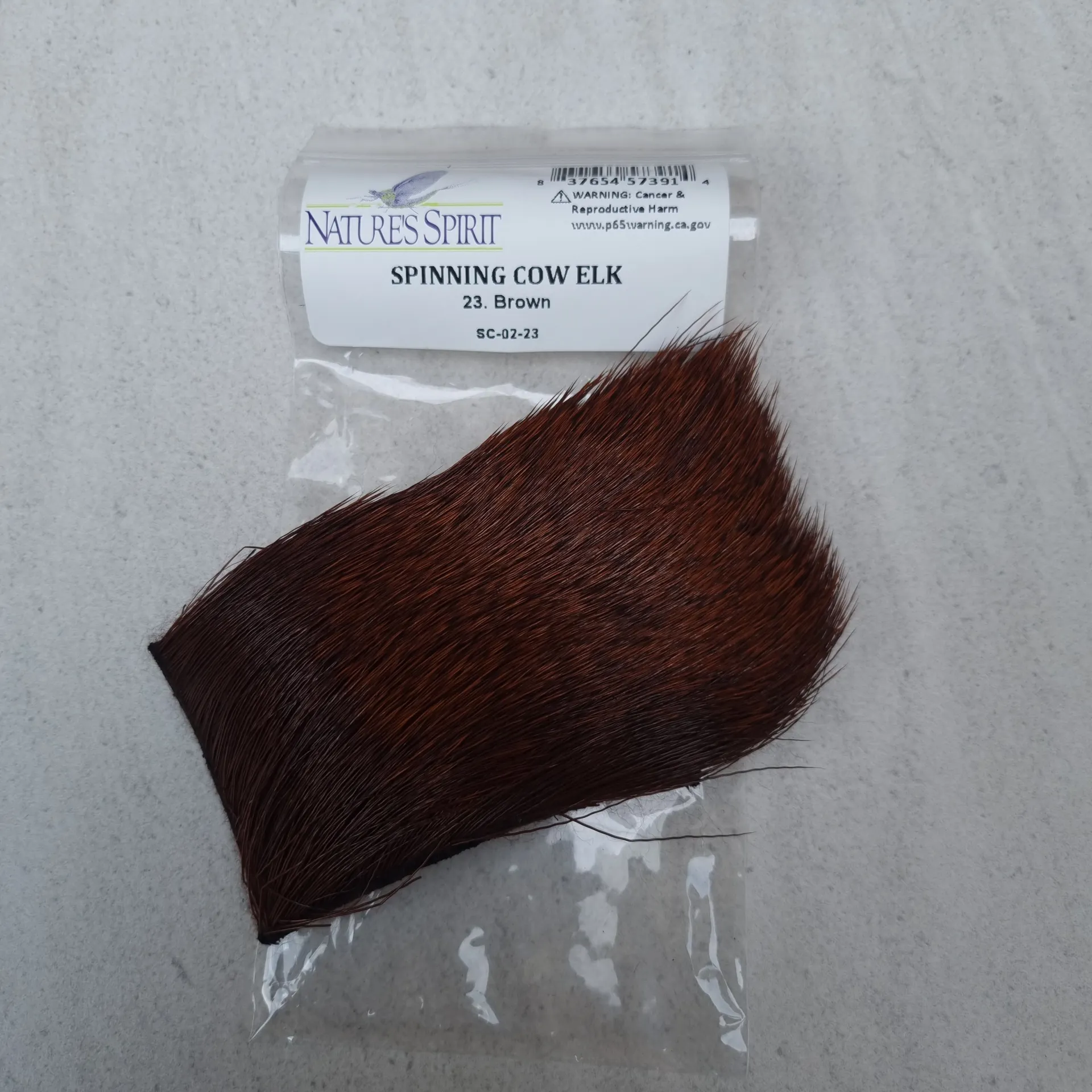 Nature's Spirits Spinning Cow Elk hair as been selected for the length of fiber, fall or early winter hair that averages 2" to 3" in length. It is fairly coarse and spins easily producing a very durable and very buoyant fly. 2"*3" patch.
